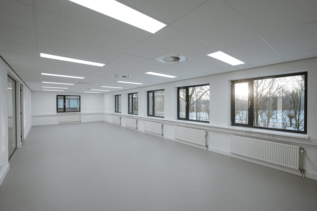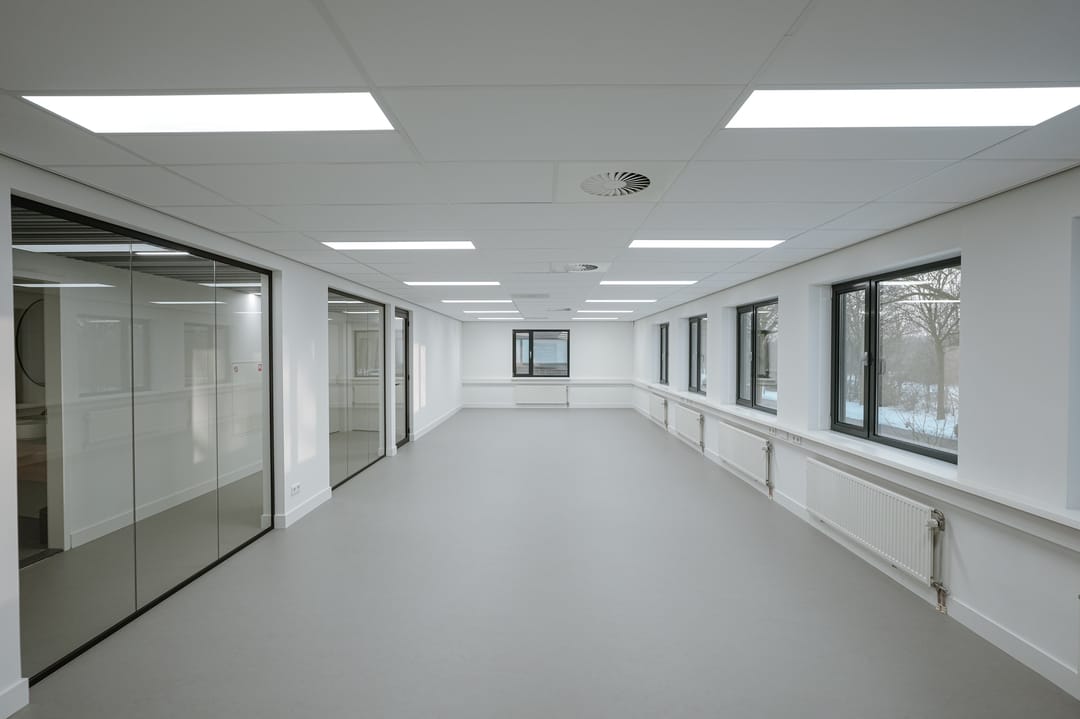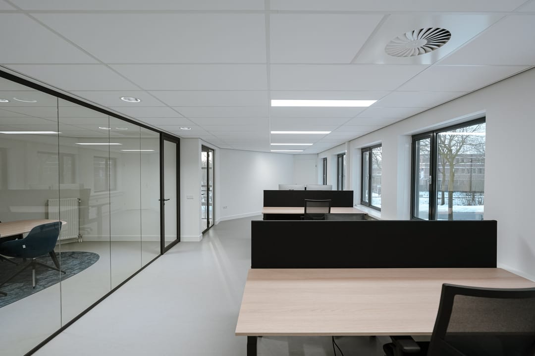- Airconditioning, mechanische ventilatie, inbouwarmaturen, te openen ramen, kabelgoten, systeemplafond, toilet, pantry, verwarming en kamerindeling