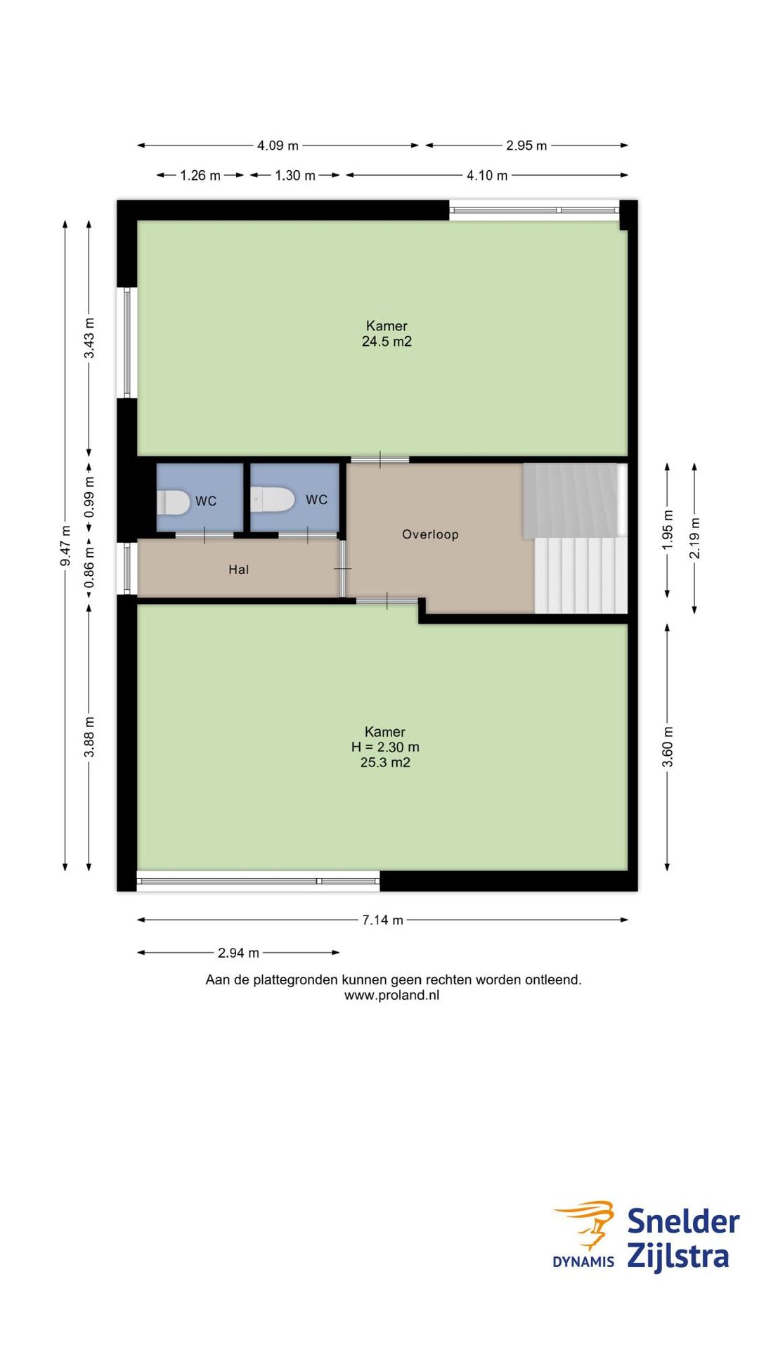 De oppervlakten zijn gemeten door verkopend makelaar uit een kopie bouwtekening. Het opgegeven metrage is derhalve indicatief; er kunnen geen rechten aan worden ontleend noch kan er sprake zijn van enige verrekening achteraf.