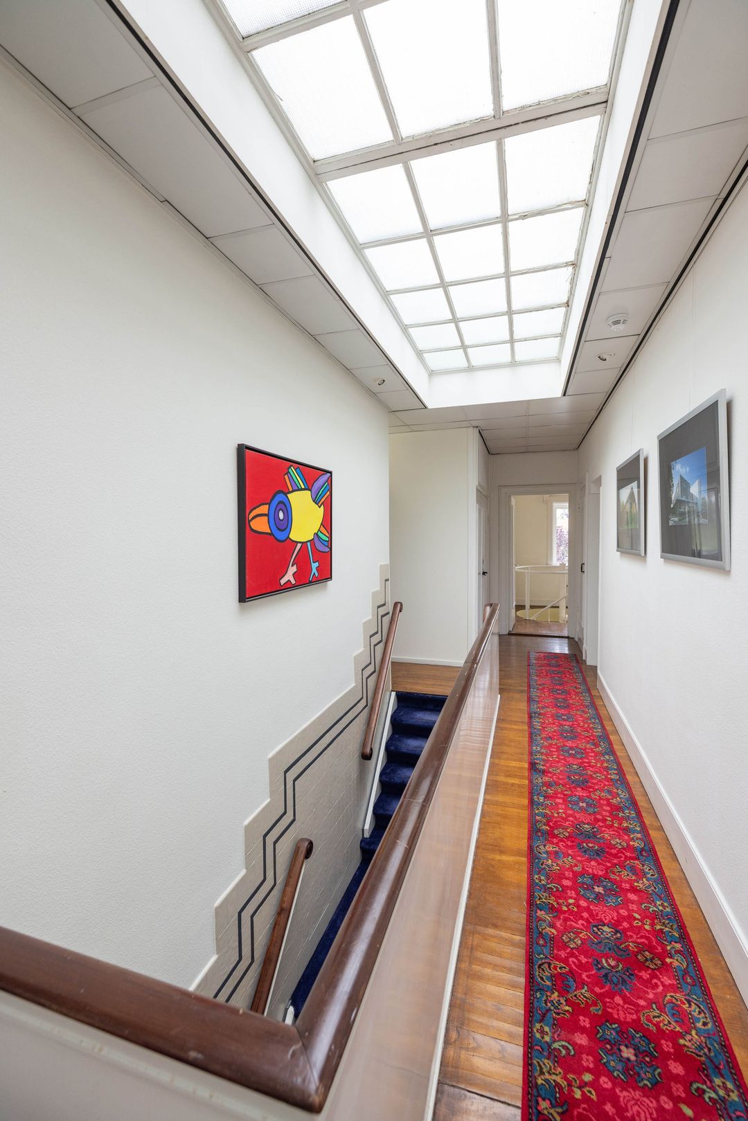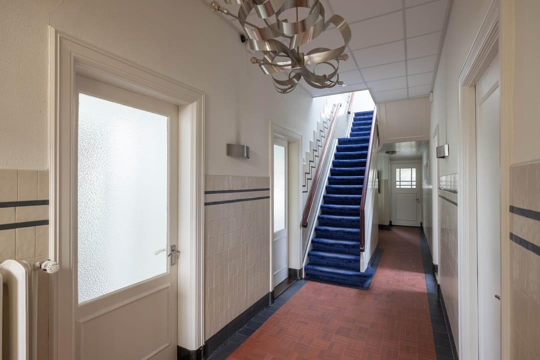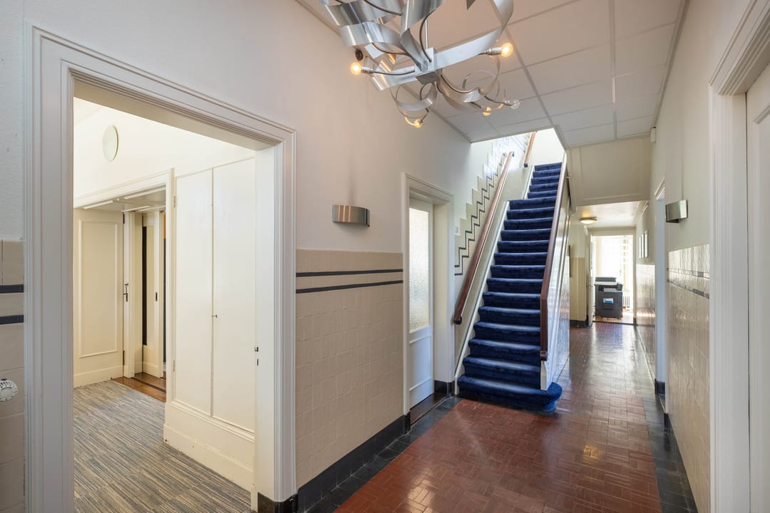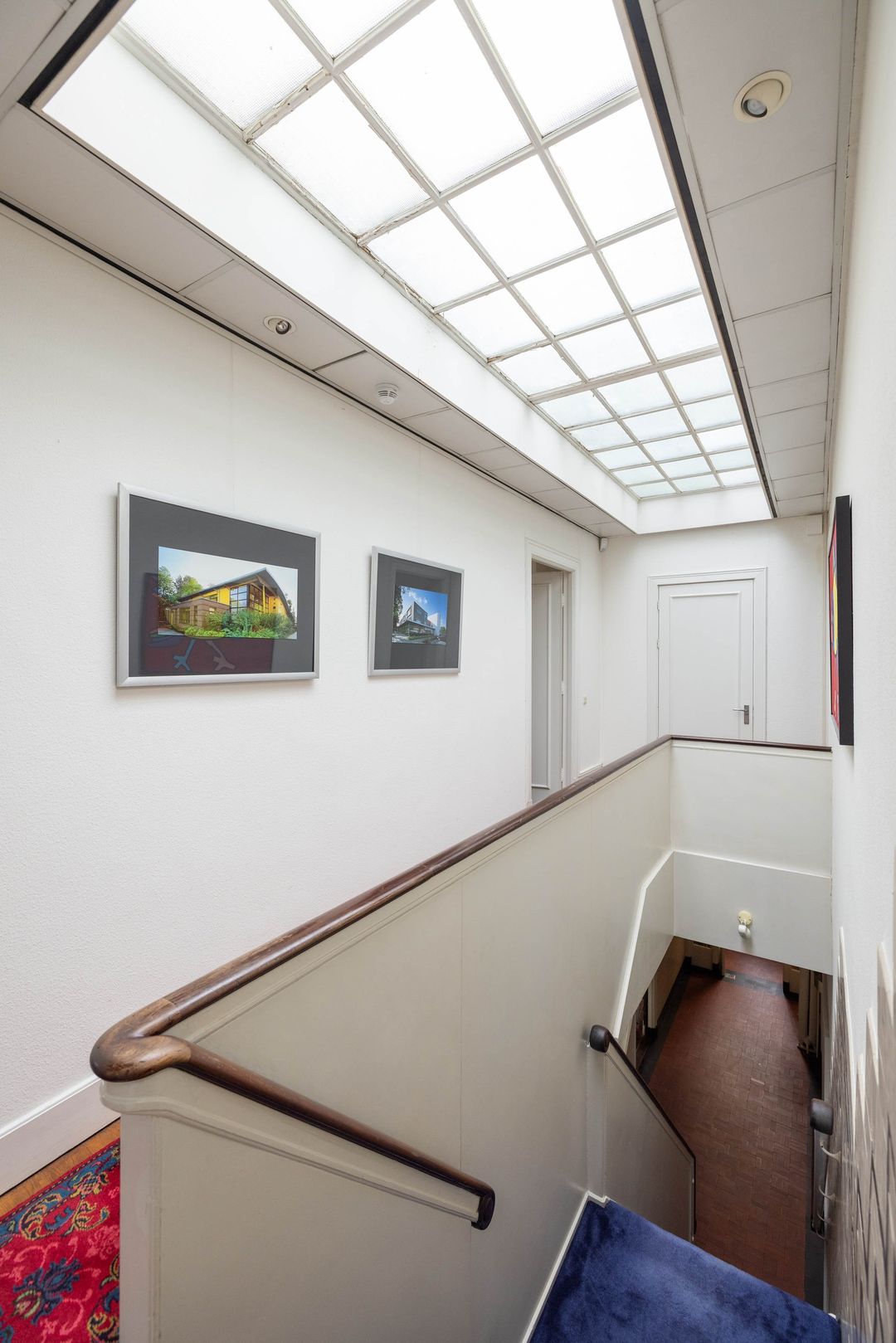 Via een statige bordestrap bereikt u de fraaie overloop met parketvloer en lichtstraat over de gehele lengte, kast met aansluiting voor een wasmachine. Grenzend aan de overloop liggen twee royale slaapkamers, waarvan een met vaste kasten en toegang tot balkon, badkamer met doucheruimte en dubbele wastafel, separaat toilet en werkkamer/slaapkamer met spiltrap naar beneden.