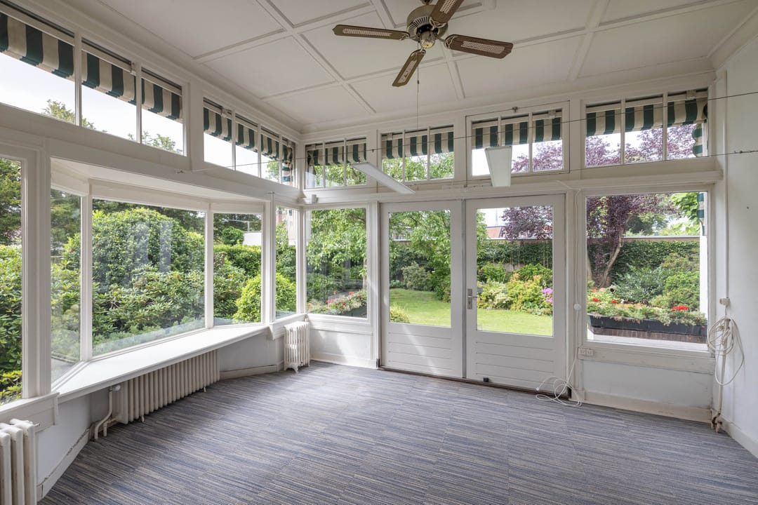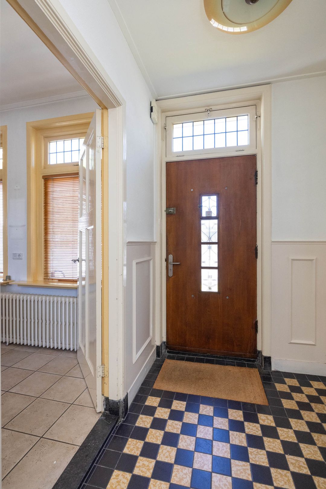 Entree, vestibule, gang met de originele tegels, bordestrap, toiletruimte, voorkamer met erker, vaste kasten en en suite deuren, royale kamer met aangebouwde erker en en suite deuren met aansluitend een serre met openslaande tuindeuren naar ruim terras en met uitzicht over de fraaie tuin. De woonkeuken met keukenblok is voorzien van diverse inbouwapparatuur en biedt toegang tot royale kelder. Achter de woonkeuken bevindt zich een tuinkamer annex werkkamer met dubbele terrasdeuren en spiltrap naar de erboven gelegen werkkamer/slaapkamer.