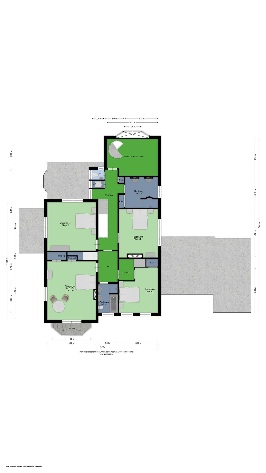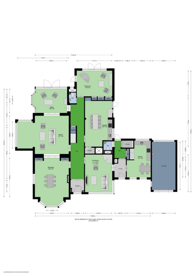 * Aangebouwde stenen garage (afm. 3,44 m¹ x 7,01 m¹);