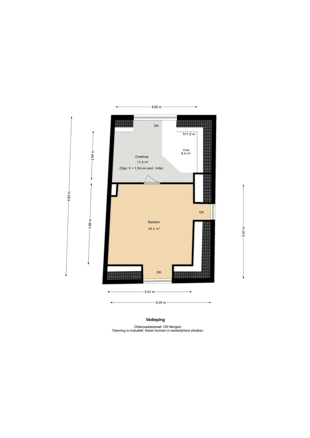 Het object heeft een totale oppervlakte van ca. 140 m² welke als volgt is onderverdeeld: