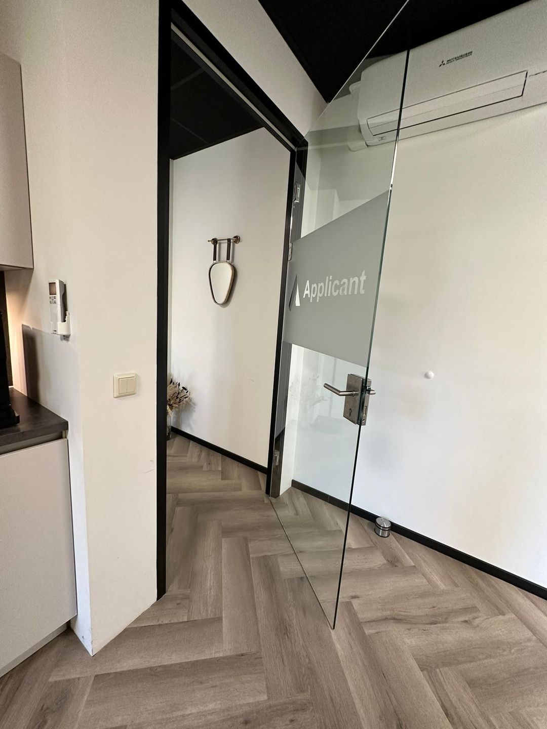 U komt binnen aan de voorzijde door middel van ruime entree. Hier bevindt zich de trap naar de kantoorruimte op de verdieping en het toilet op de begane grond. Het gebruik van de entree en toilet is gezamenlijk met verhuurder. Verhuurder heeft een zelf een opslag/ stallingsruimte op de begane grond. Verhuurder maakt nauwelijks gebruik van de entree en het toilet. De kantoorruimte op de verdieping bestaat uit een wachtruimte met volledig ingerichte keuken en 2 ruime kantoorkamers.