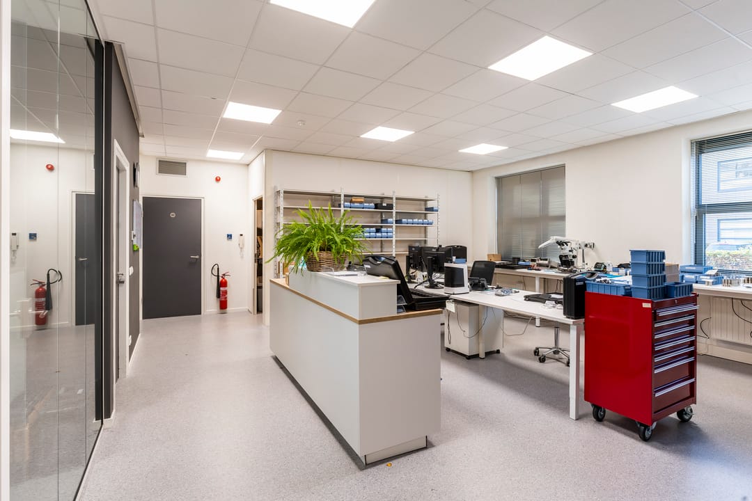 Het kantoor omvat circa 360 m², verdeeld over drie bouwlagen, en beschikt over 9 eigen parkeerplaatsen. Het pand is hoogwaardig afgewerkt en direct klaar voor gebruik. Dankzij o.a. 24 zonnepanelen (380 Wp per stuk), overwegend LED-verlichting en diverse energiebesparende maatregelen werkt u hier in een uiterst duurzaam gebouw met een energielabel A+.