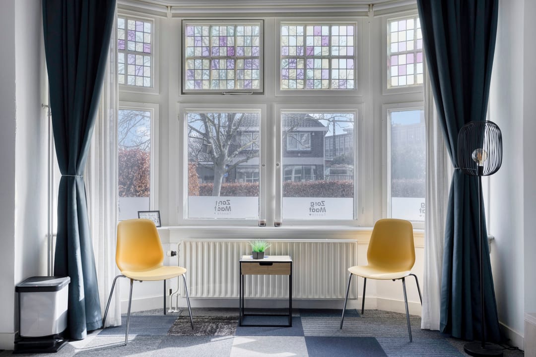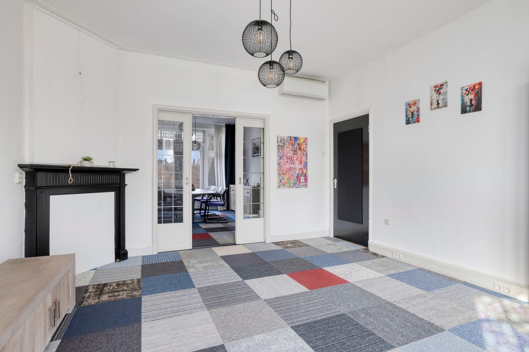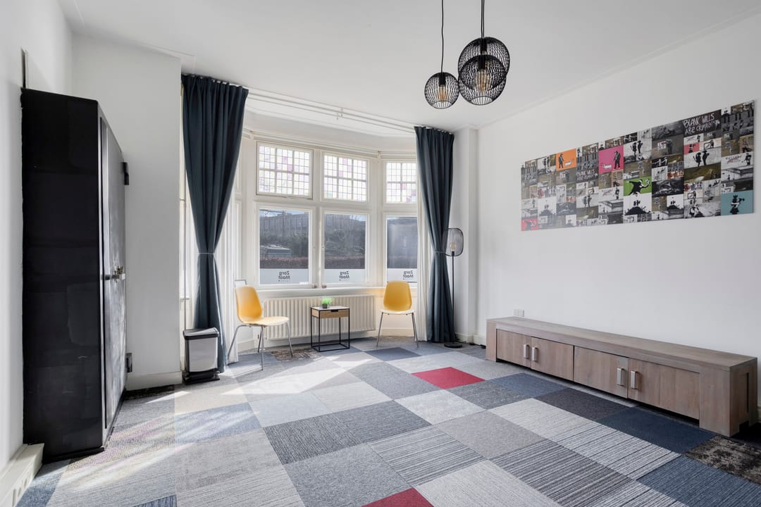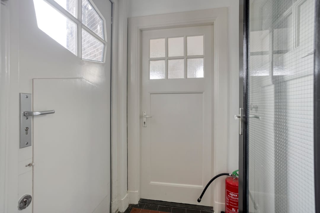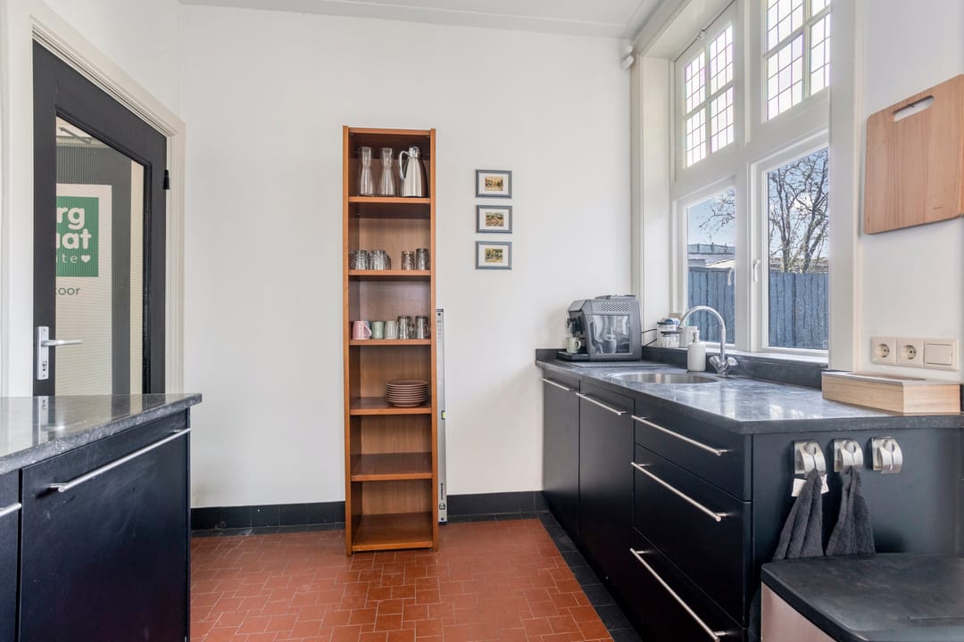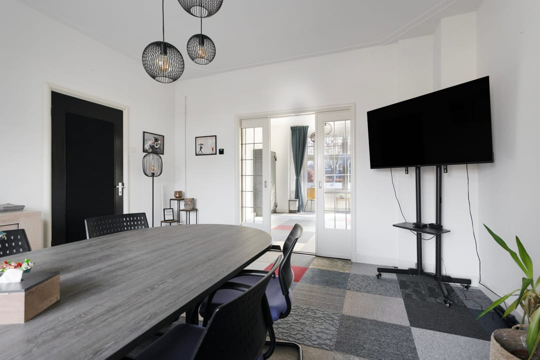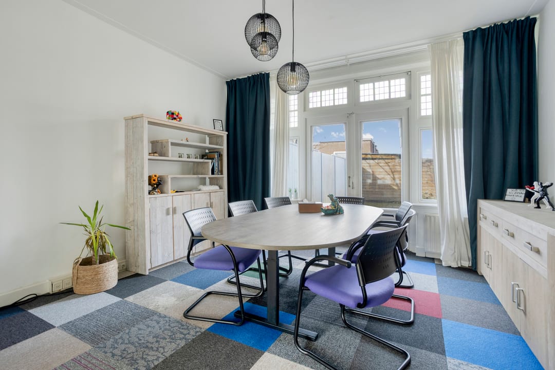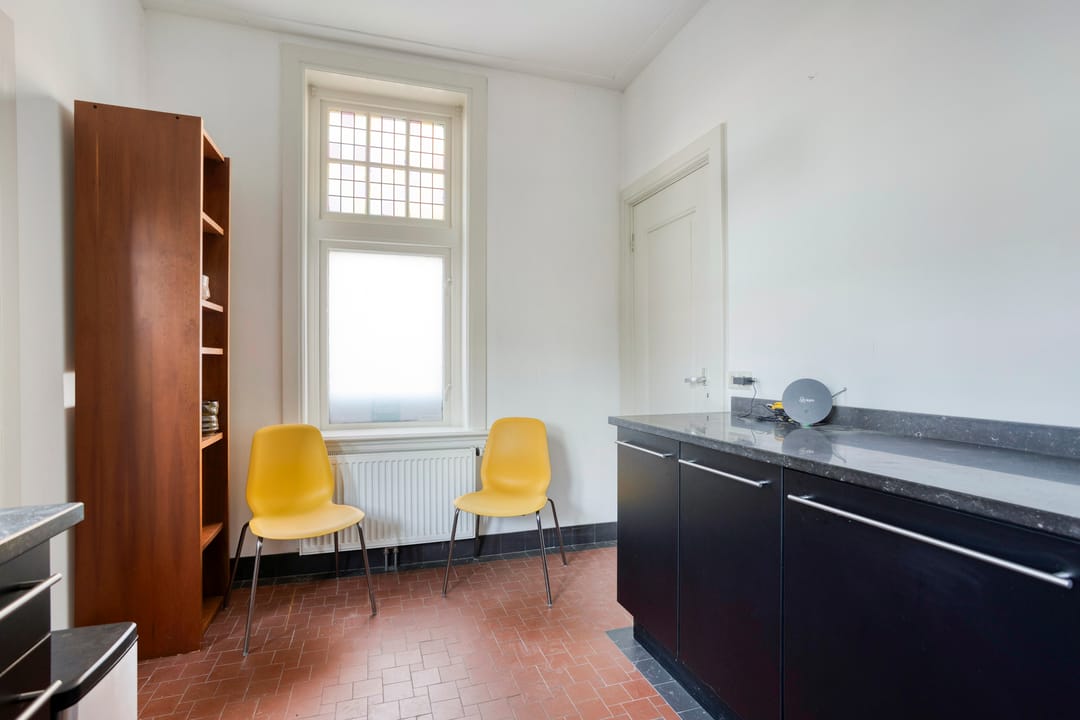De begane grond beschikt over een centrale hal/entree die toegang biedt tot meerdere separate ruimtes, waardoor de indeling flexibel te gebruiken is als werk-, spreek- of behandelkamers. Aan de achterzijde bevindt zich een privé betegelde tuin, toegankelijk vanuit het gehuurde alsmede via de achteringang. Bij het gehuurde behoren twee parkeerplaatsen, en er is ruim voldoende parkeergelegenheid in de nabije omgeving.