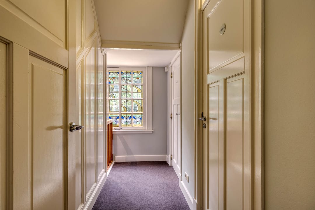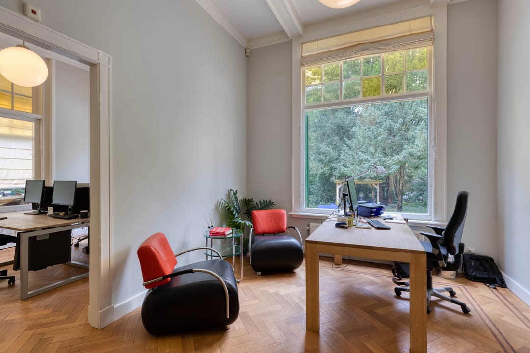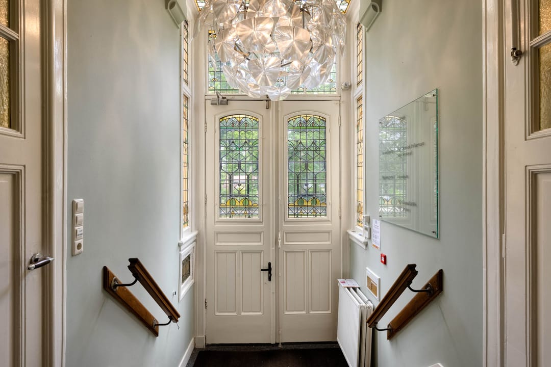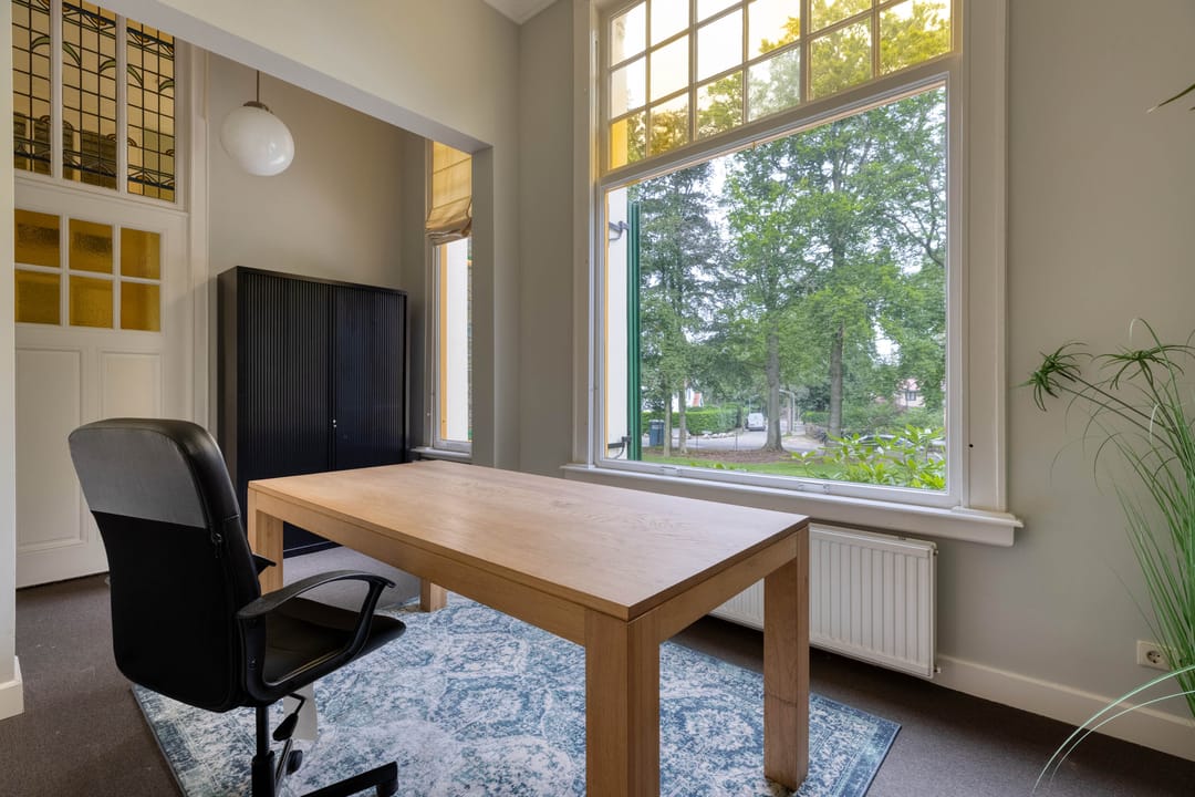 - Plafonds in de kantoorkamers zijn voorzien van sierwerk