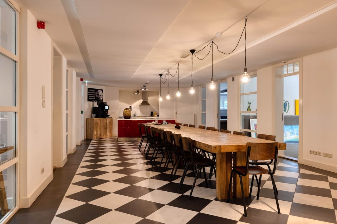 - Uitgebreide keukenvoorziening, vergaderruimte en lunchruimte in het souterrain