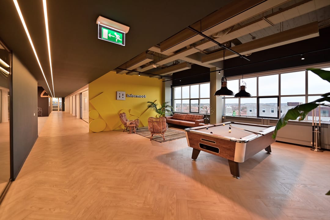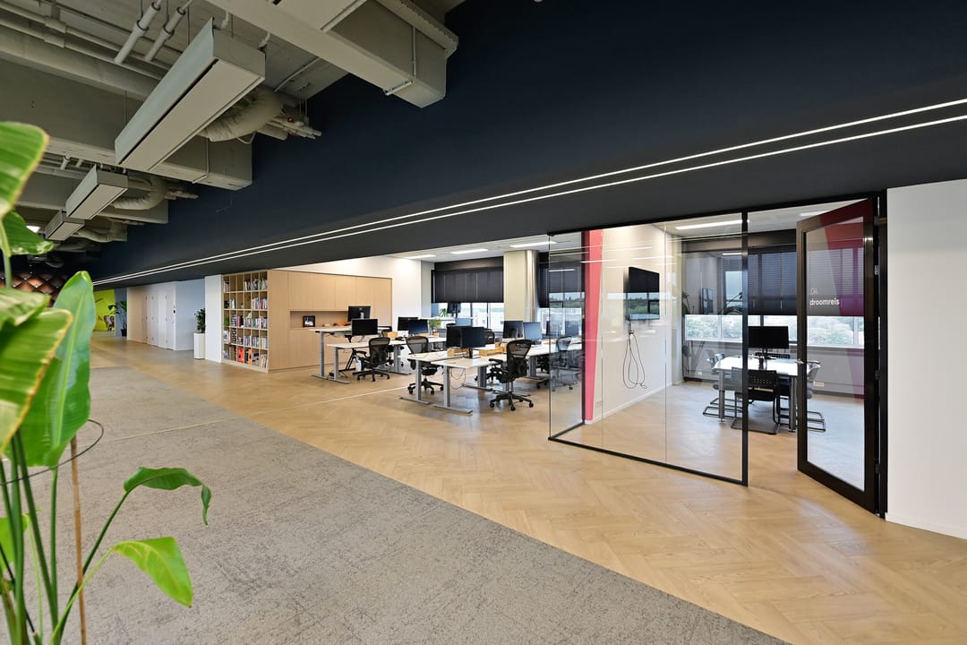 - een inbouwpakket met daartoe behorende de vloerbedekking*, (systeem)scheidingswanden* en het systeemplafond inclusief verlichtingsarmaturen*, airconditioning*.