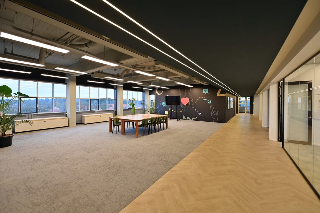 De beschikbare kantoorruimte is gelegen op de vierde en tevens bovenste verdieping en kent een verhuurbaar vloeroppervlak van totaal circa 1.250 m² v.v.o.