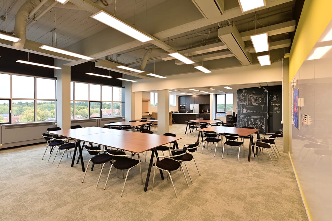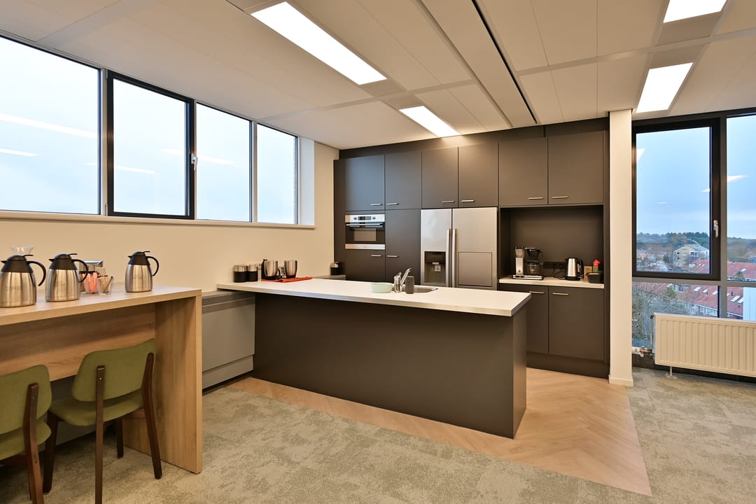 - Mechanische ventilatie, topkoeling, inbouwarmaturen, liften, te openen ramen, kabelgoten, systeemplafond, toilet, pantry, verwarming en kamerindeling
