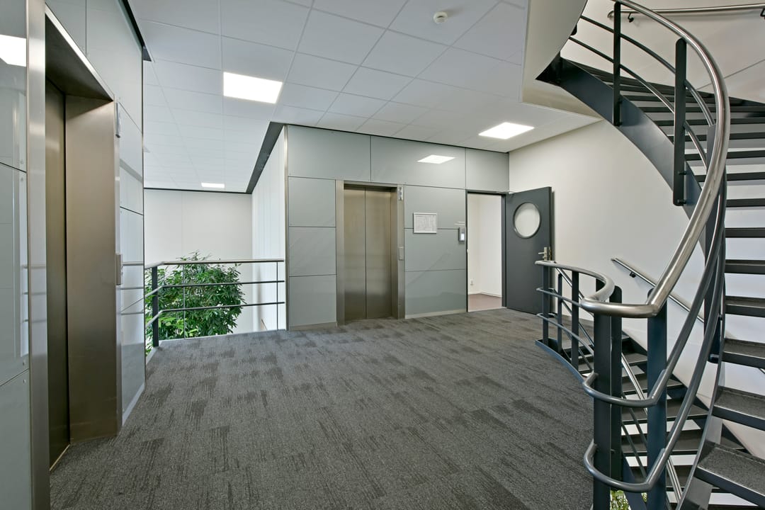 - Liften, kabelgoten, systeemplafond en verwarming