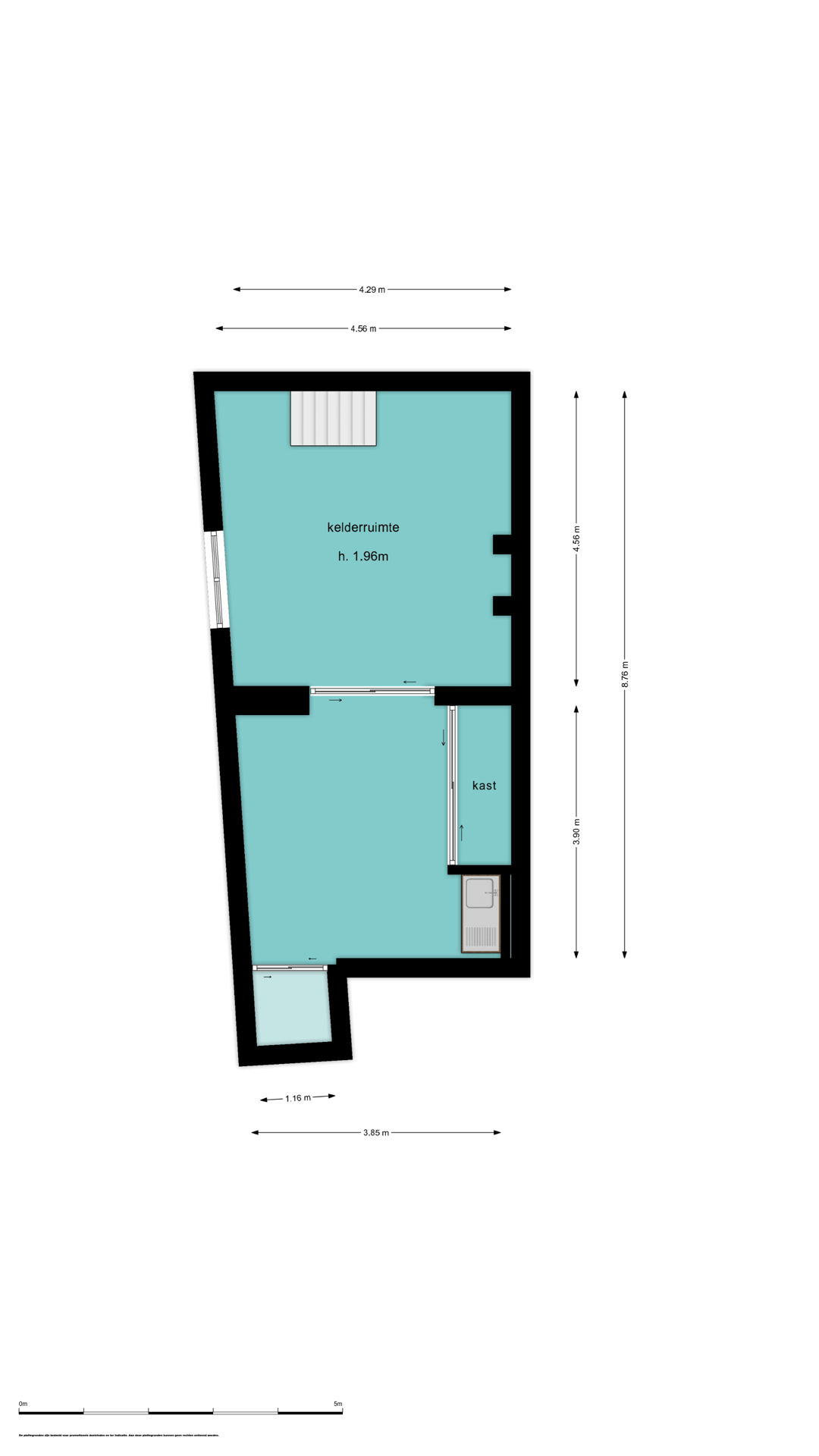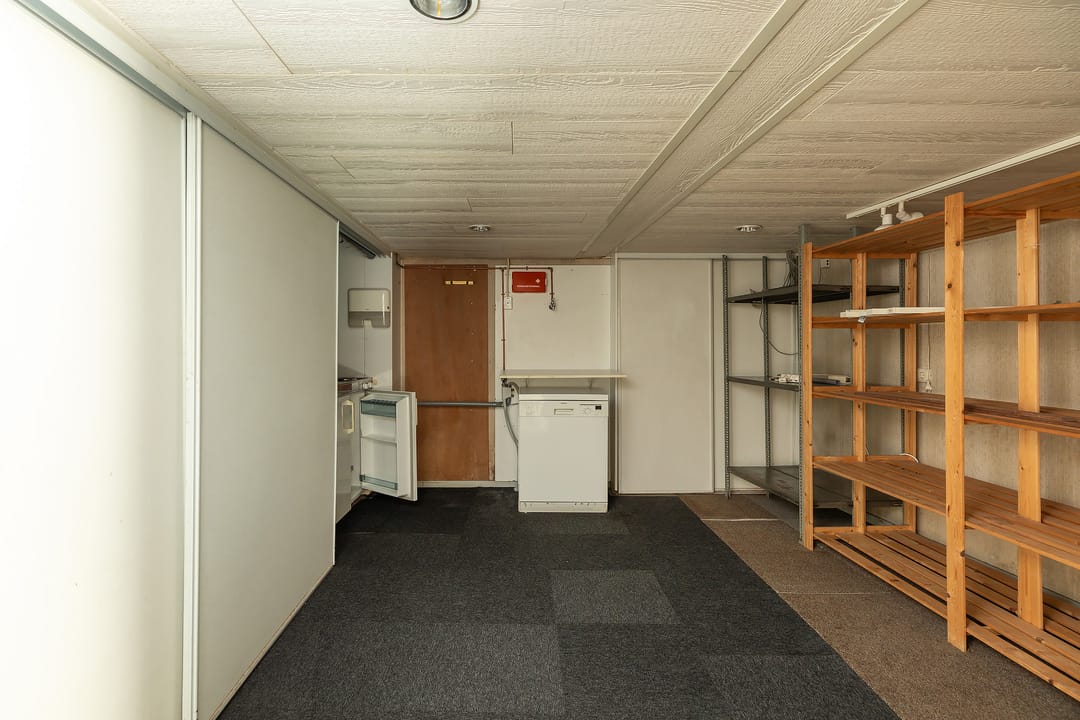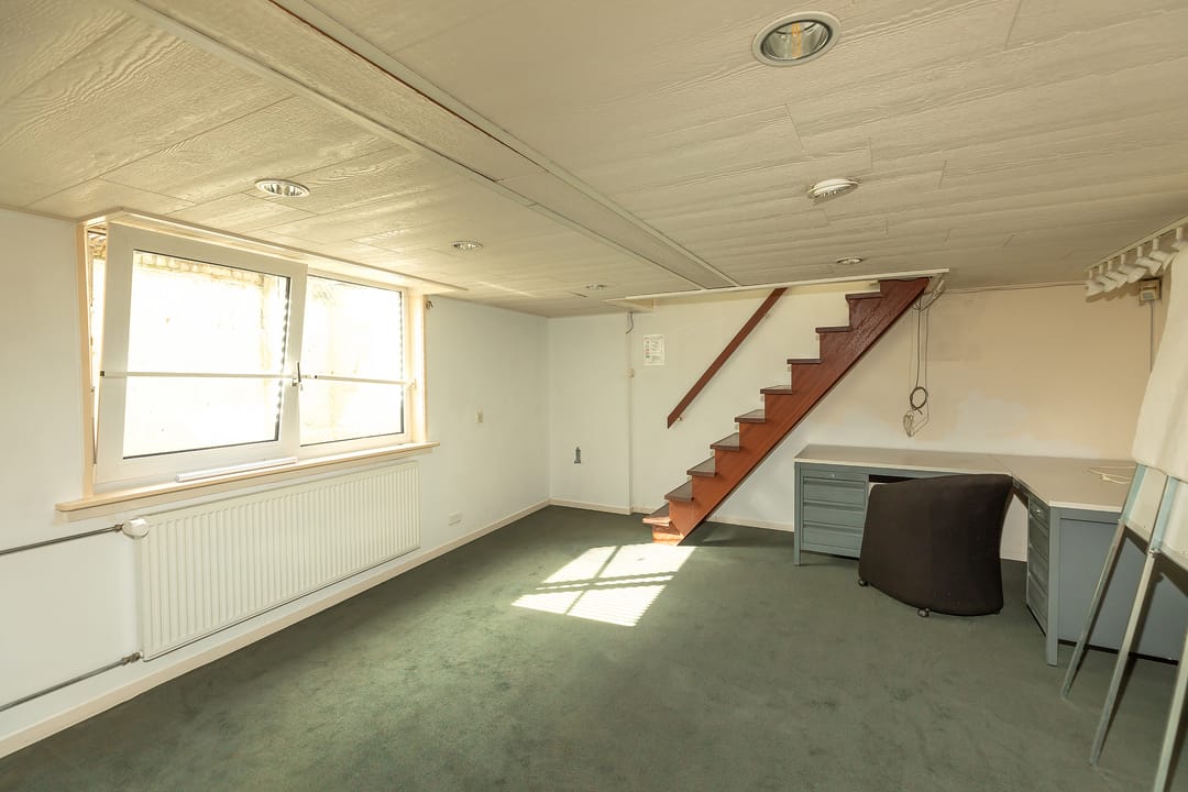 Via de trap is het souterrain bereikbaar, een praktische en goed bruikbare ruimte van circa 45 m². Ideaal als archief of opslagruimte.