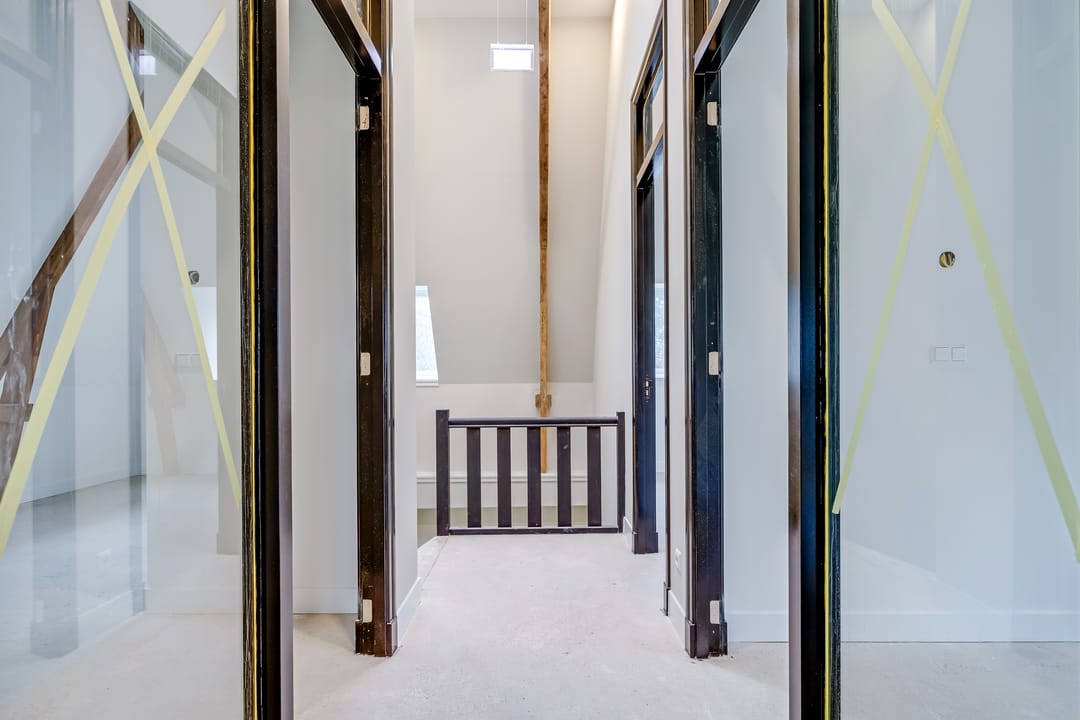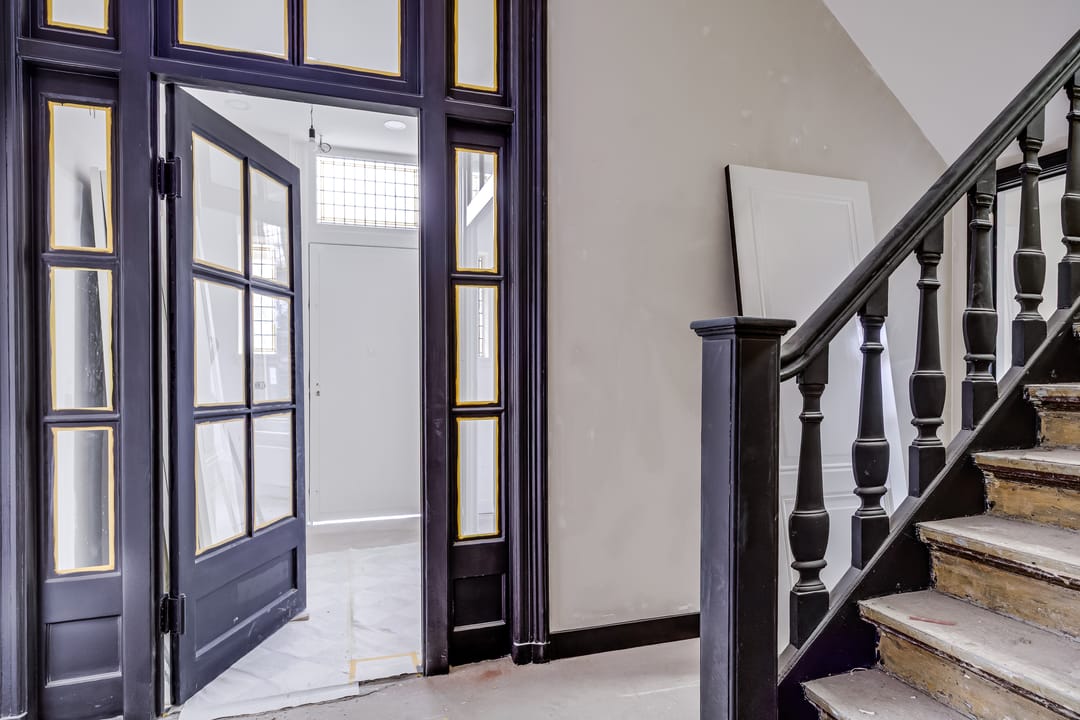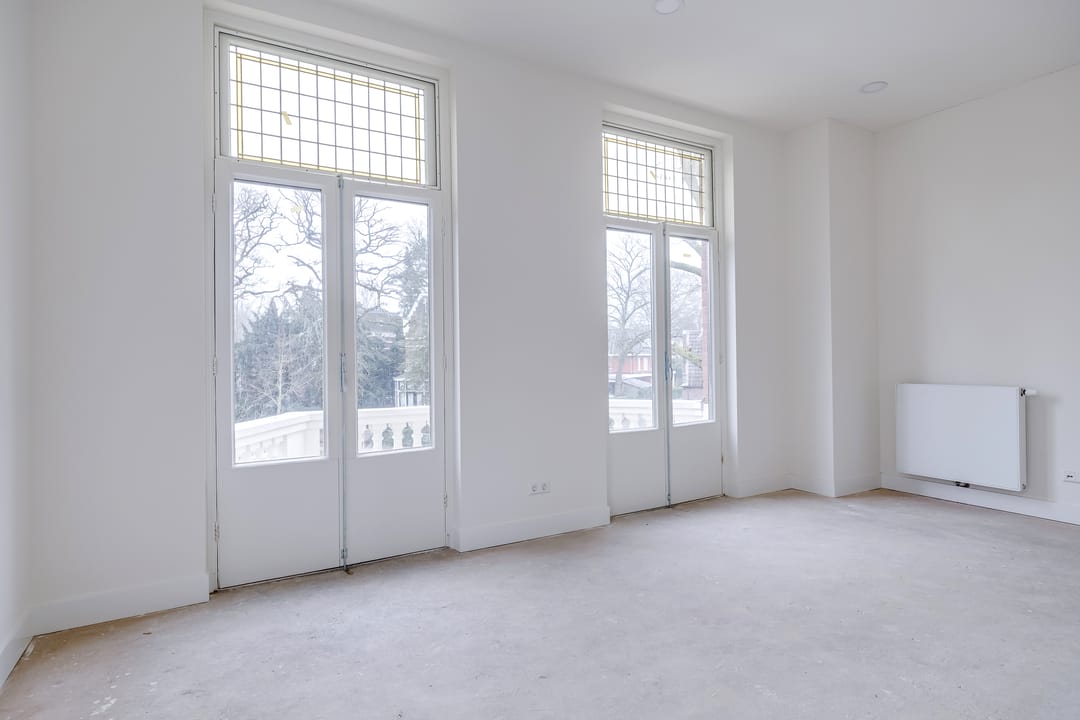 - in stucwerk uitgevoerde wanden en plafonds;