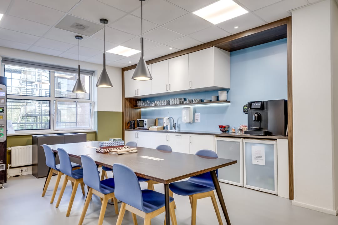 Er zijn diverse faciliteiten zoals een business lounge, flexwerkplekken, vergaderruimtes, belruimtes en keukenfaciliteiten.