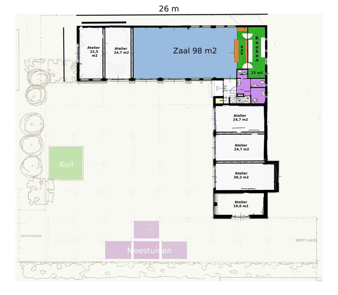 De ruimte kan in overleg zowel binnen als buiten naar wens worden ingericht.
