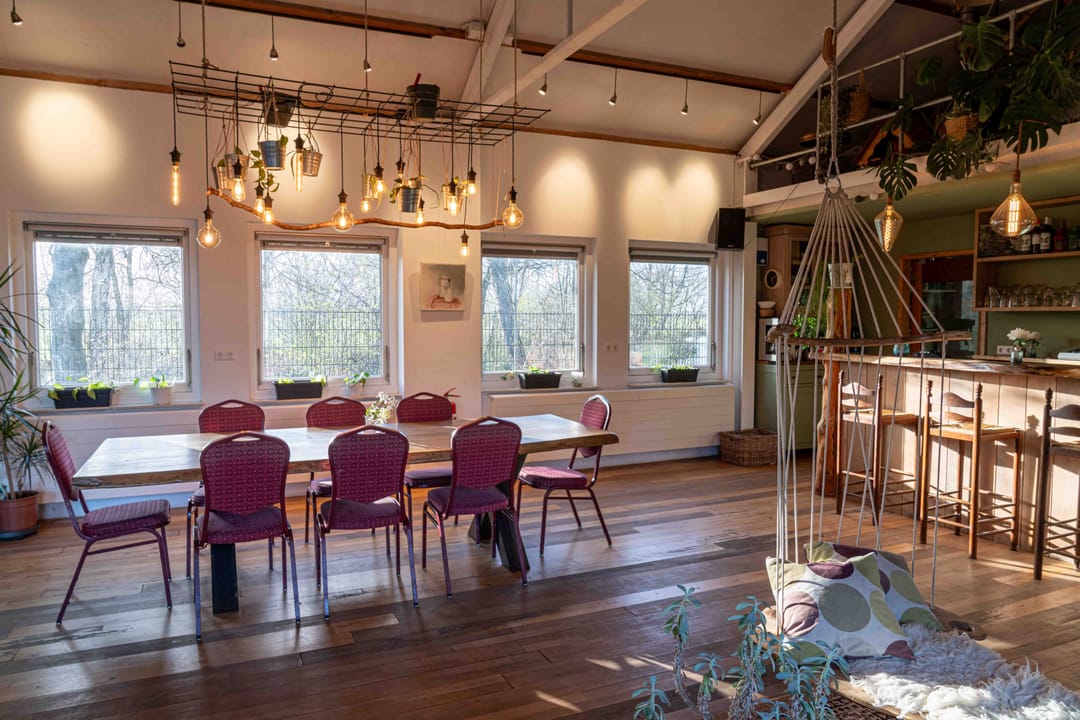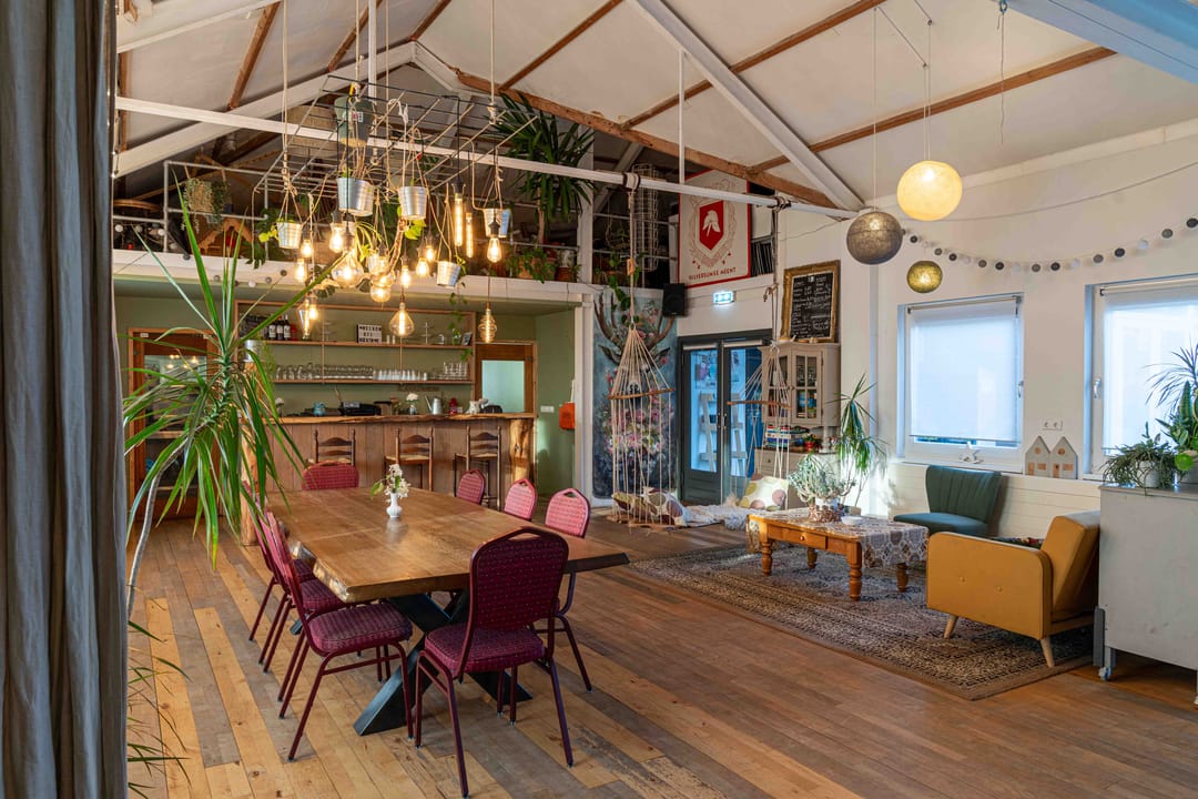 In de culturele broedplaats de Meentwerf, gelegen aan de rand van een park, bevindt zich deze bijzondere en zeer lichte ruimte: La Kantina. De voormalige brandweerkazerne huisvest zes kunstenaarsateliers rondom een ruime binnenplaats, met La Kantina als centrale ruimte. La Kantina is per direct beschikbaar voor meerder dagen per week. De ruimte is multifunctioneel inzetbaar en leent zich uitstekend voor activiteiten op het gebied van kunst, educatie, (persoonlijke) ontwikkeling en/of duurzaamheid, binnen een inspirerende en duurzame omgeving. De ruimte is uitstekend geschikt voor organisaties die werken met trainingen, workshops, bijeenkomsten of culturele programmering.