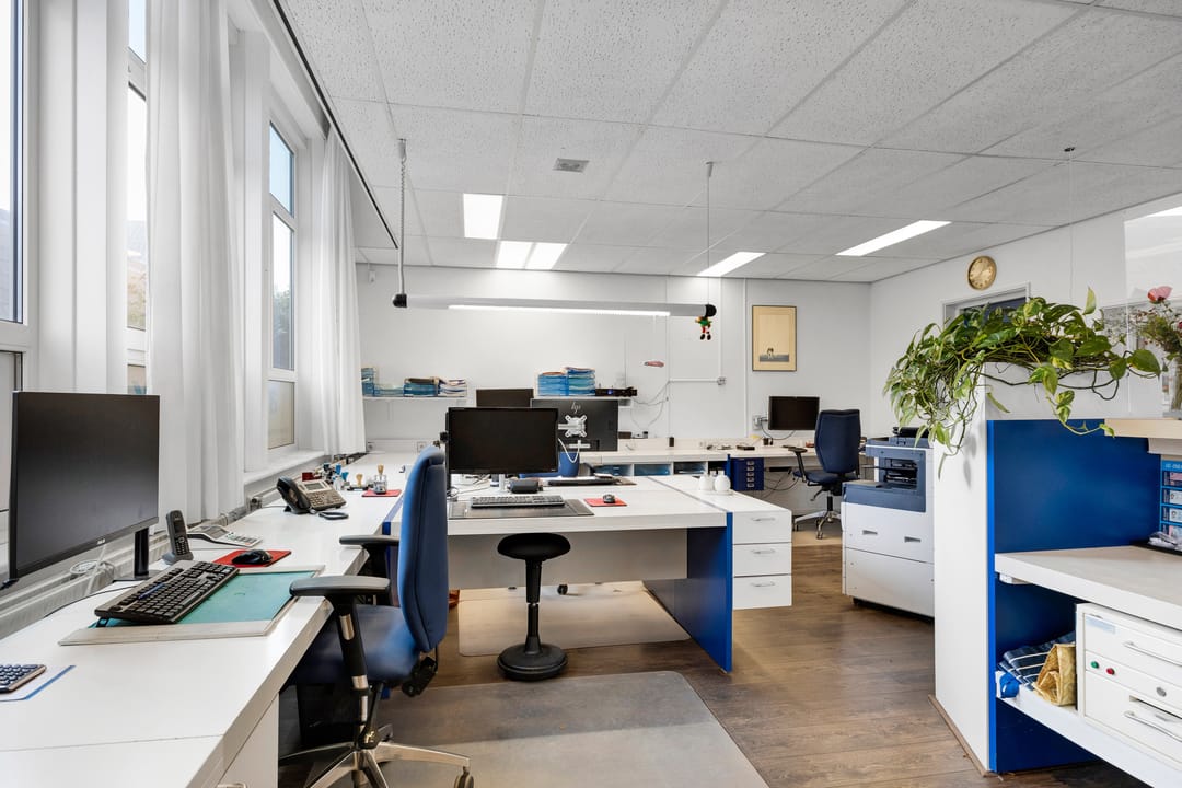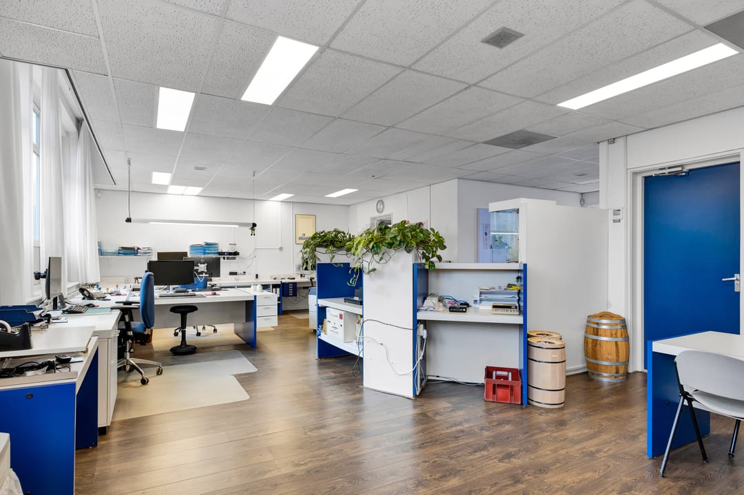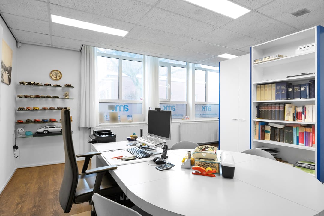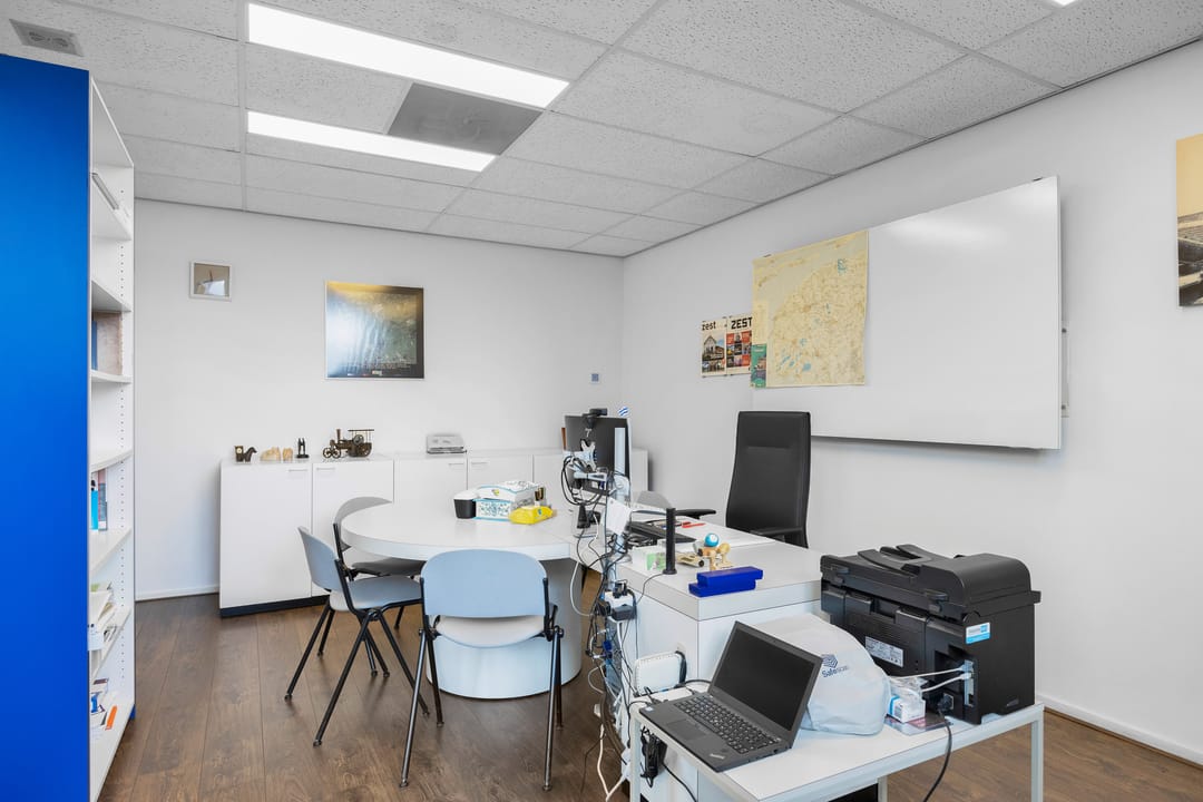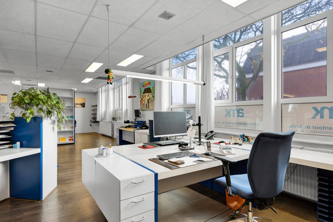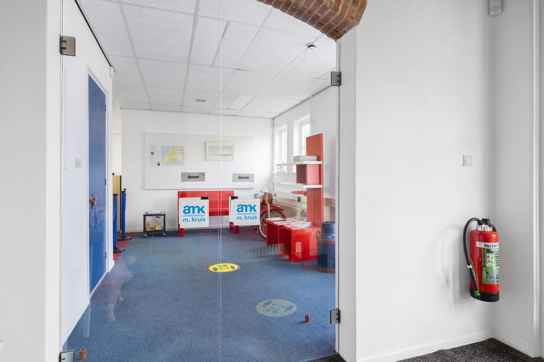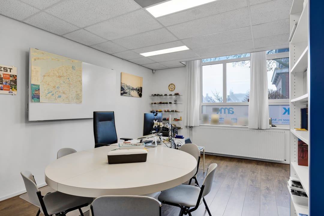 Groot kantoor (ca. 77 m²) met systeemplafond v.v. led verlichting en airconditioning. De kantoorruimte is deels v.v. kabelgoten.