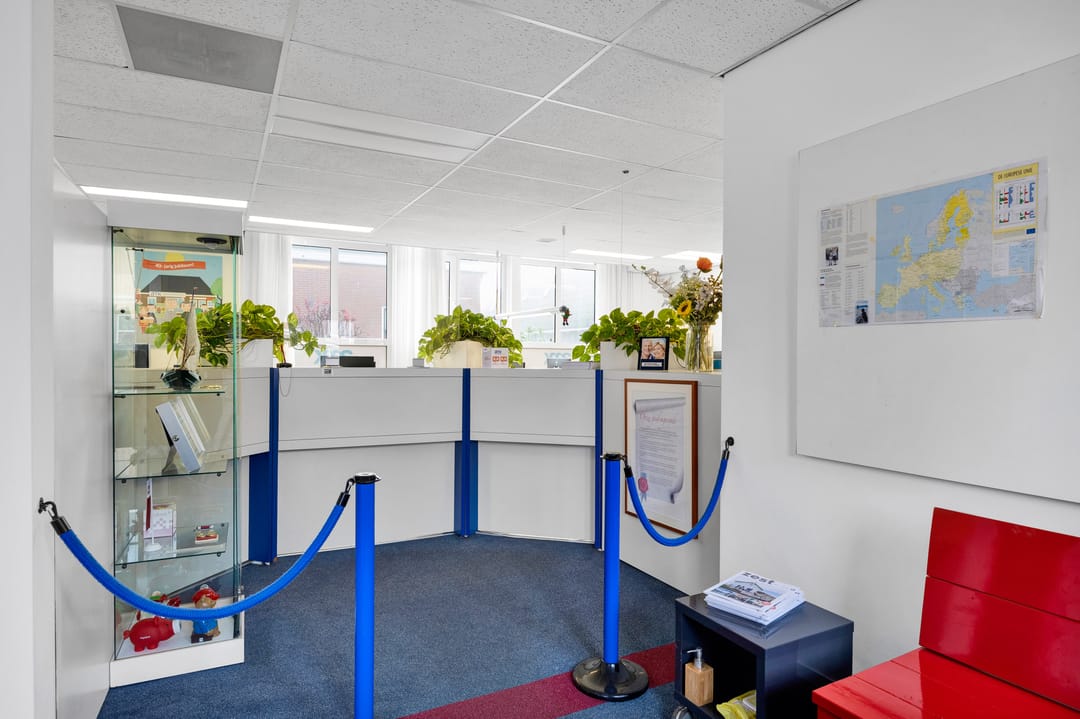 Royale entree/hal (± 6,5 m²) met receptie annex wachtruimte (ruim 16 m²).