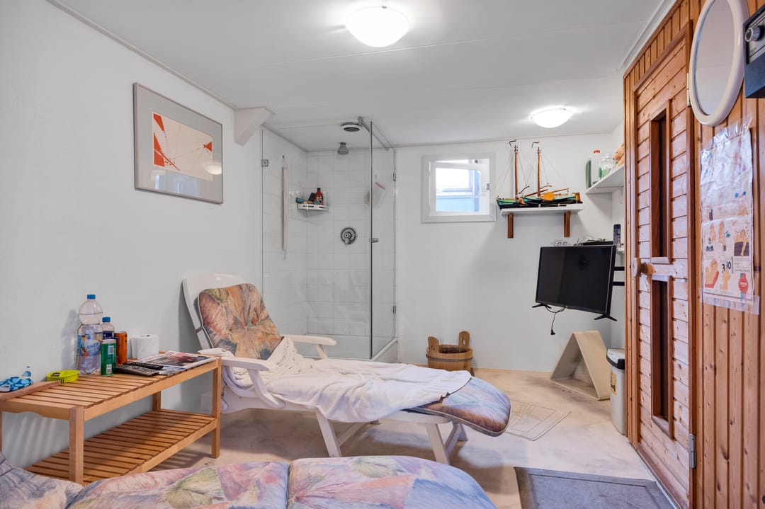 Opslagruimte (circa 67 m²) waarvan een gedeelte afsluitbaar is. In dit afsluitbare gedeelte is een sauna en een douche aanwezig.