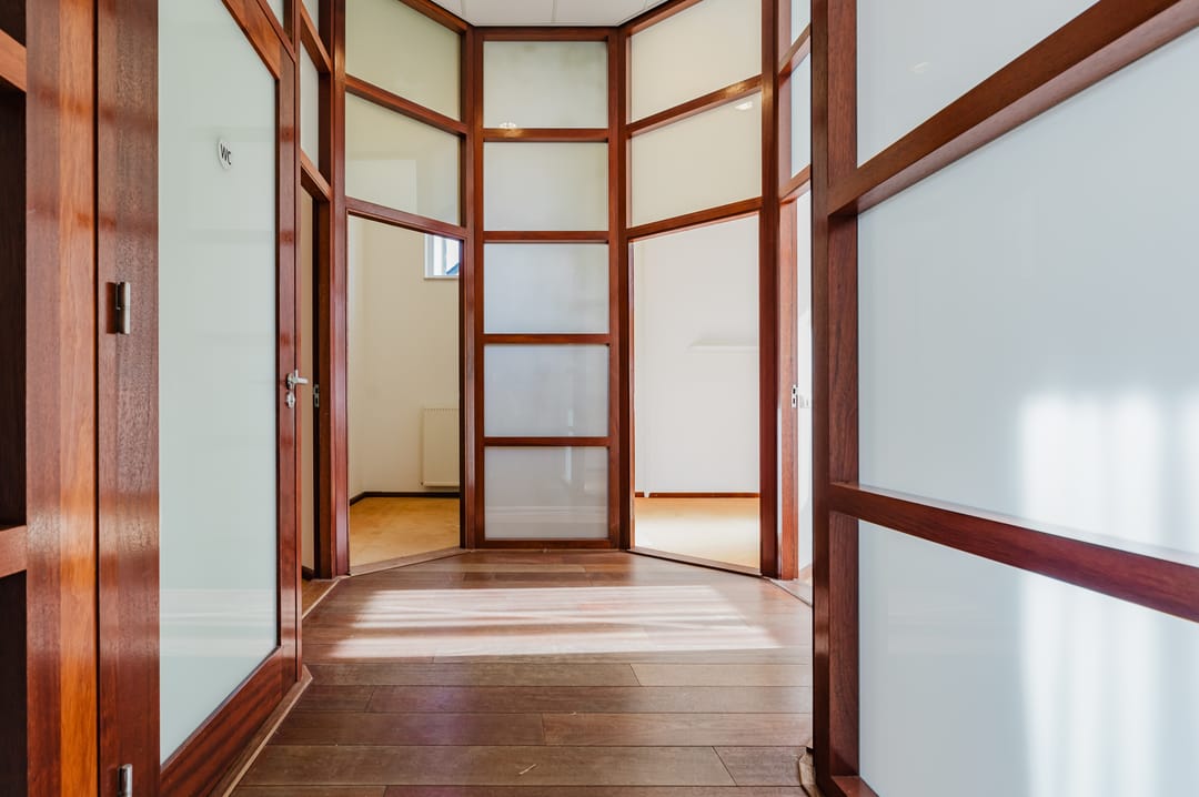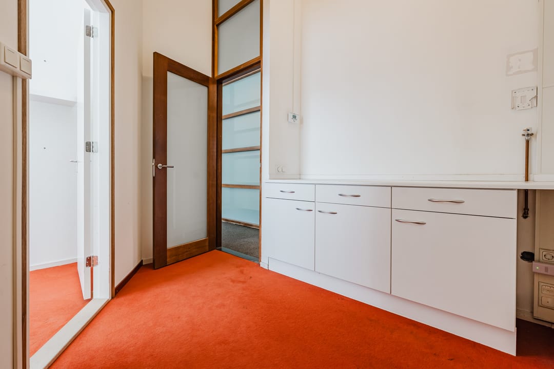 - Mechanische ventilatie, inbouwarmaturen, te openen ramen, kabelgoten, systeemplafond, toilet, pantry, verwarming en kamerindeling