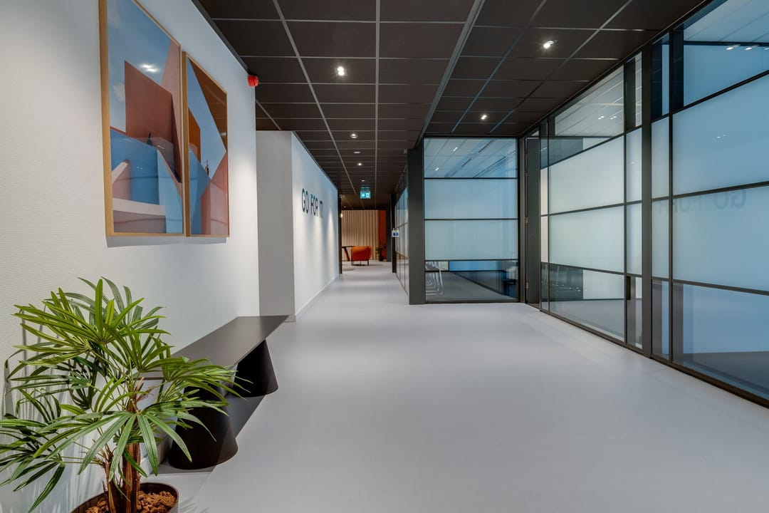 Het kantoorgebouw beschikt over grote vloervelden van circa 1.100 m2 en een kleinere topverdieping van circa 590 m2. Op de begane grond bevindt zich de voormalige lunchruimte met een aangrenzende opslagruimte met overheaddeur. De combinatie van een zichtlocatie aan de rijksweg A1 met circa 100.000 passanten per dag en de mogelijkheden tot naamsaanduiding op de gevel, biedt organisaties uitstekende mogelijkheden hun bedrijfsnaam te profileren.