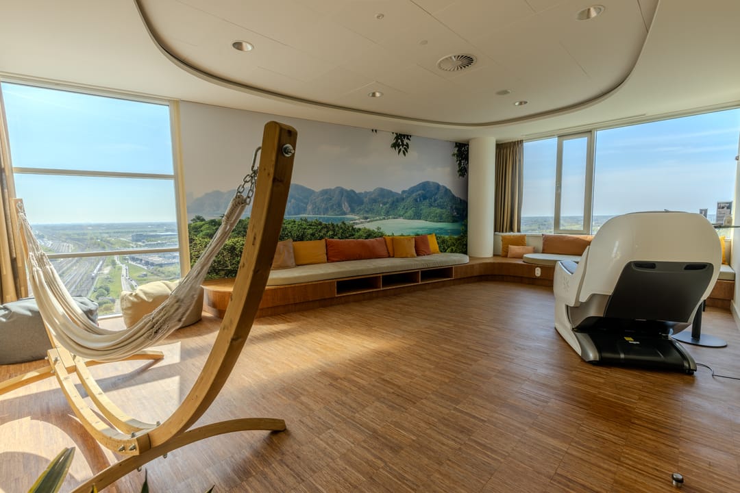 19e etage The Light House: Geniet van een panoramisch uitzicht tijdens de lunch, ontspan in de Gaïa zenruimte met massagestoel en hangmat, of organiseer een event aan de bar.