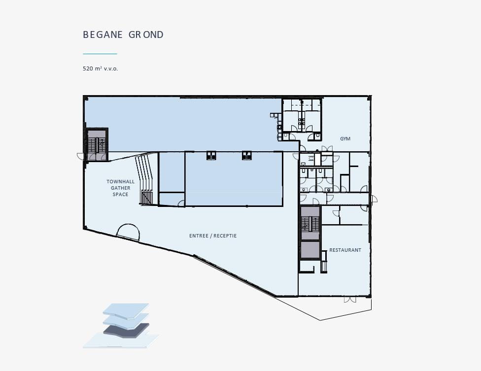 Voor de verhuur is ca. 520 m² v.v.o. beschikbaar, gelegen op de begane grond.