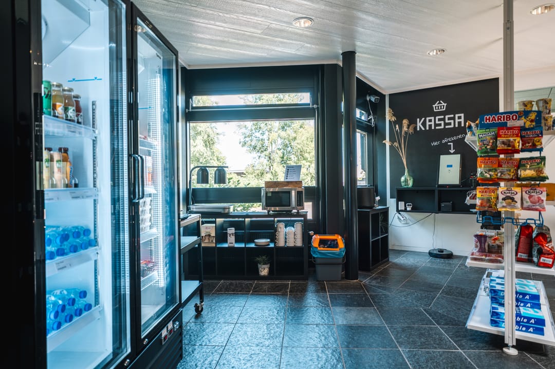 Diverse kantoorruimtes, flexruimtes, de receptie en een self-service winkel