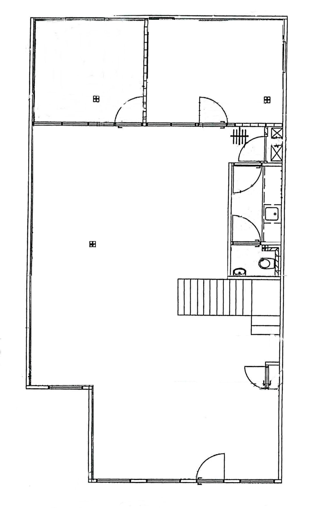 Begane grond: ruim opgezette kantoorruimte (nu met balie) met 2 separate kantoren/spreekkamers, keuken, toilet. Vaste trap naar de verdieping.