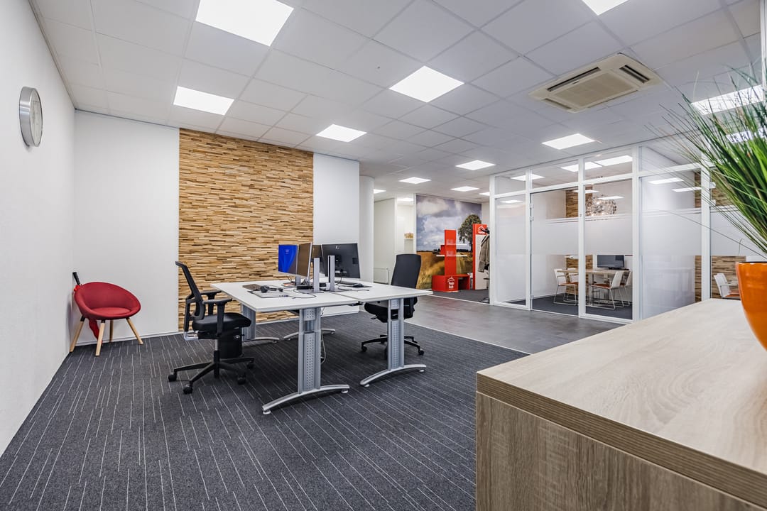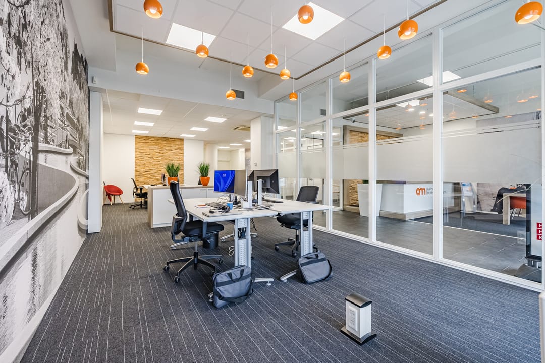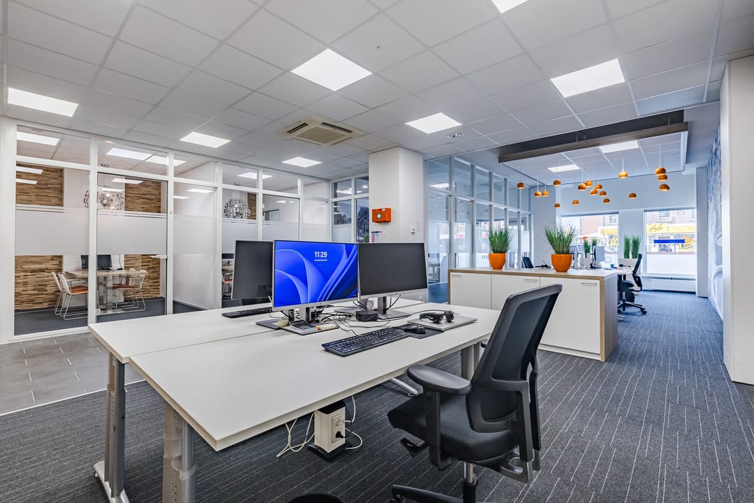 Het betreft een casco verhuur met door huurder achter gelaten voorzieningen zoals o.a. systeemplafond met verlichting, cv-installatie, airco en tussenwanden.