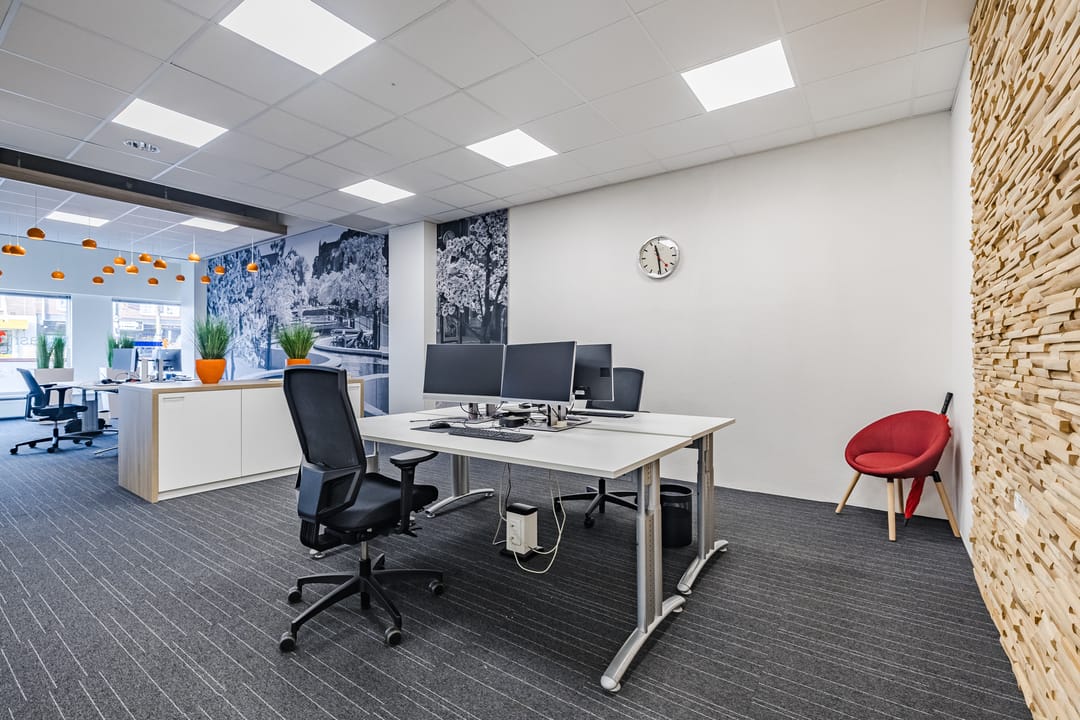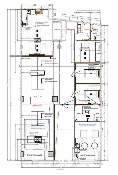 - Airconditioning, mechanische ventilatie, inbouwarmaturen, kabelgoten, systeemplafond, toilet, pantry, verwarming en kamerindeling