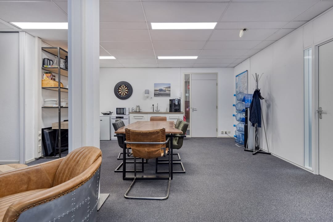 In de huurprijs is begrepen representatieve entree, gezamenlijke pantry, grote toiletgroep, vloerbedekking, systeemplafonds, gratis gebruik van de vergaderruimte en ruim voldoende gratis parkeerfaciliteiten op het buitenterrein.