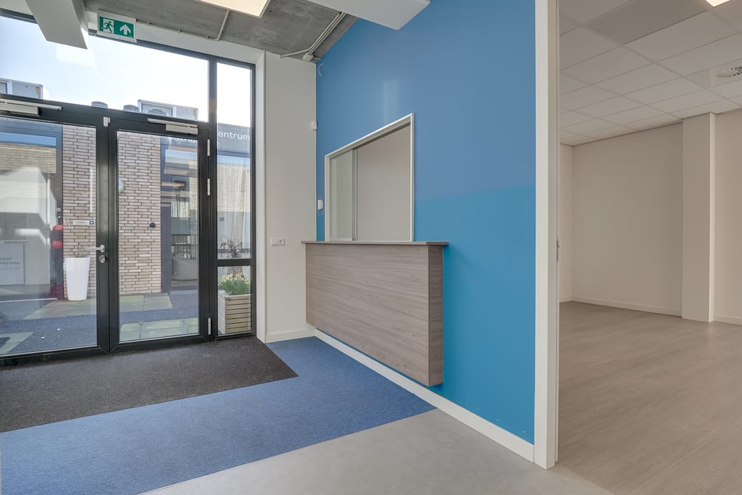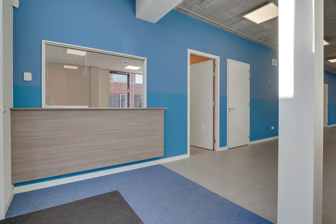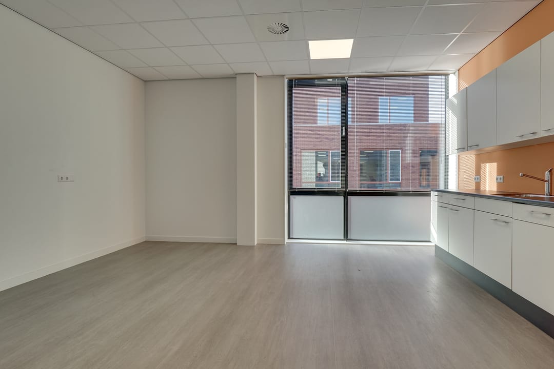 Voor de verhuur is een op de 1e verdieping gelegen kantoor-/praktijkruimte van circa 286 m² VVO beschikbaar. Bij het gehuurde zitten 4 (onverdeelde) parkeerplaatsen inbegrepen.