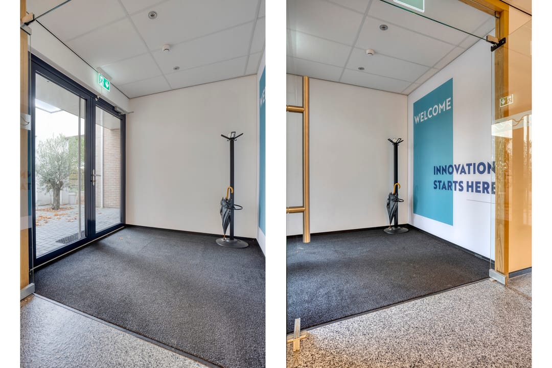 De centrale hal en pantry worden gedeeld met andere huurders en eigenaar van het bedrijfsgebouw.
