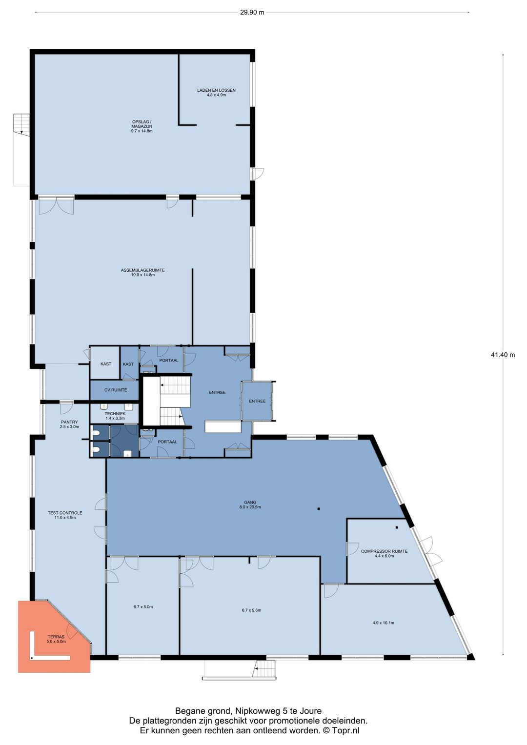De totale vloeroppervlakte van circa 1.400 m² is als volgt verdeeld: