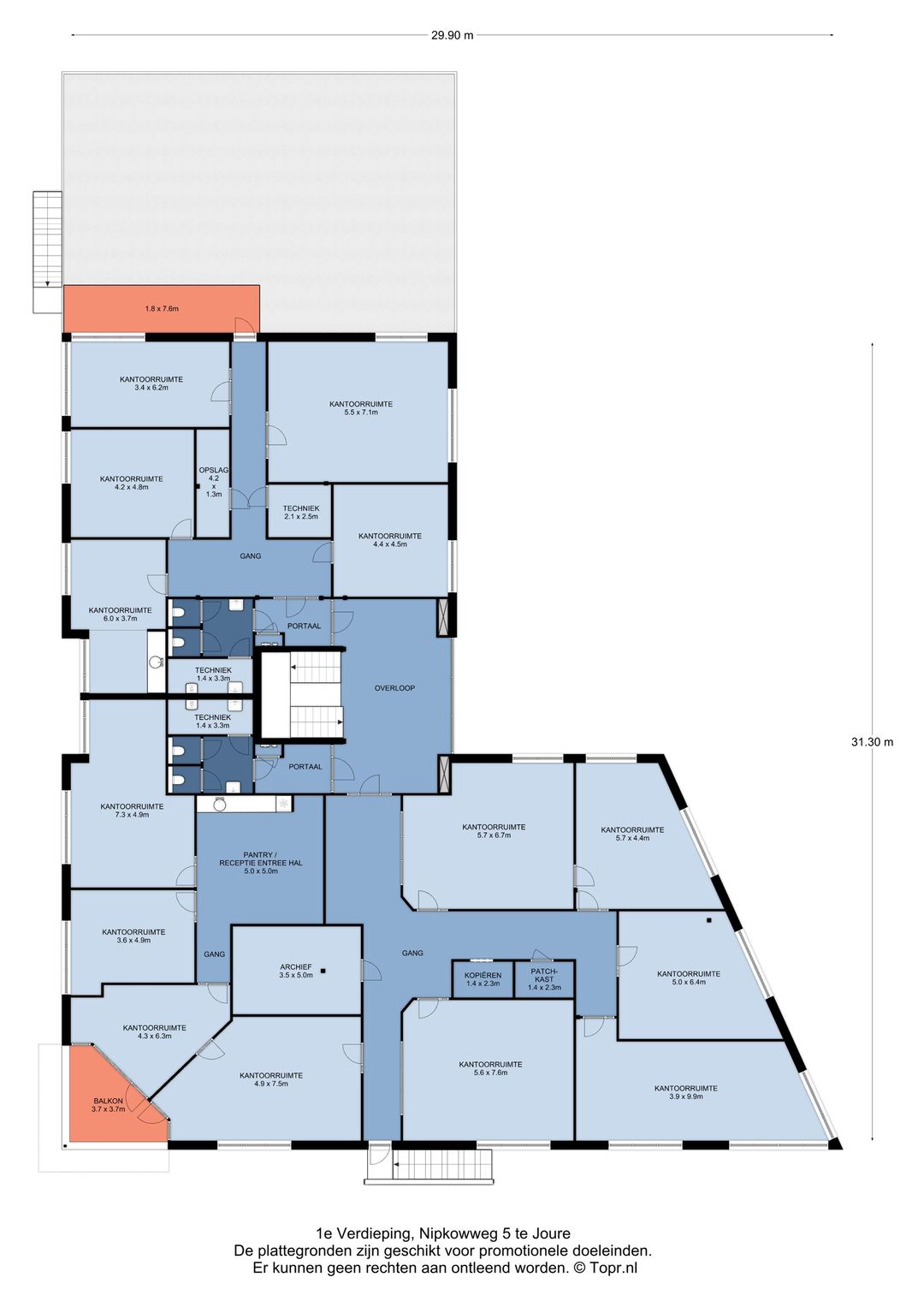 - Kantoorruimte: ca. 1.000 m², verdeeld over twee verdiepingen