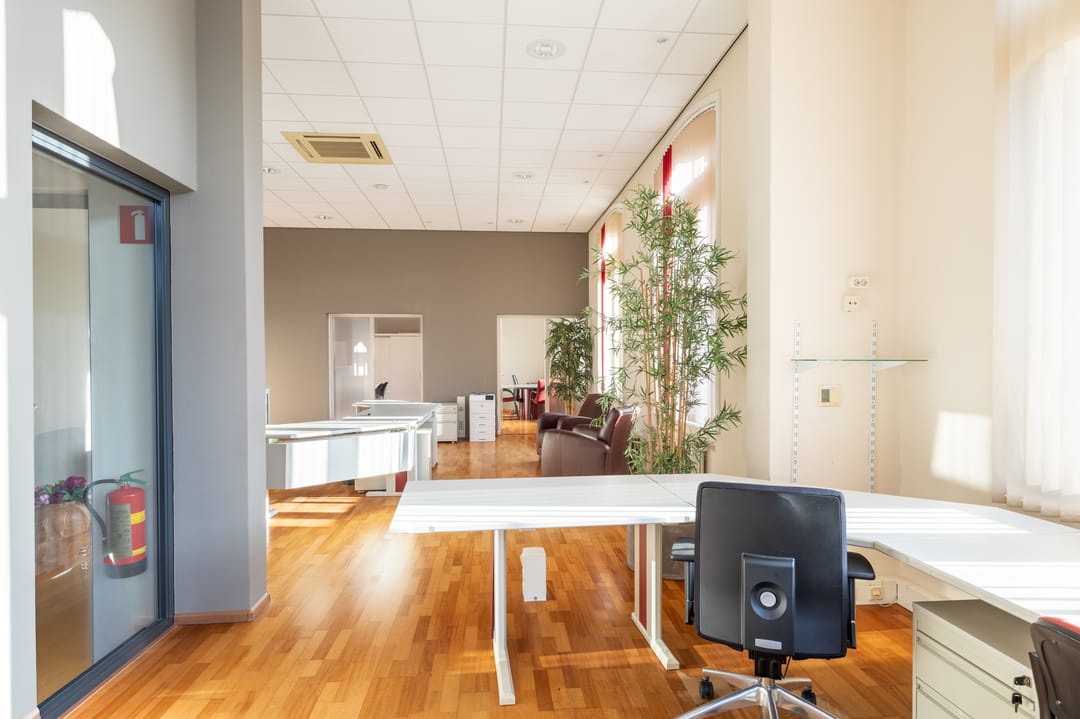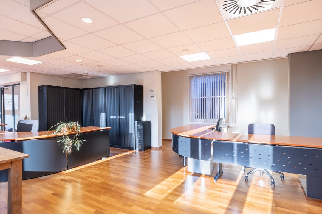- Airconditioning, te openen ramen, kabelgoten, systeemplafond, toilet, pantry, verwarming en kamerindeling