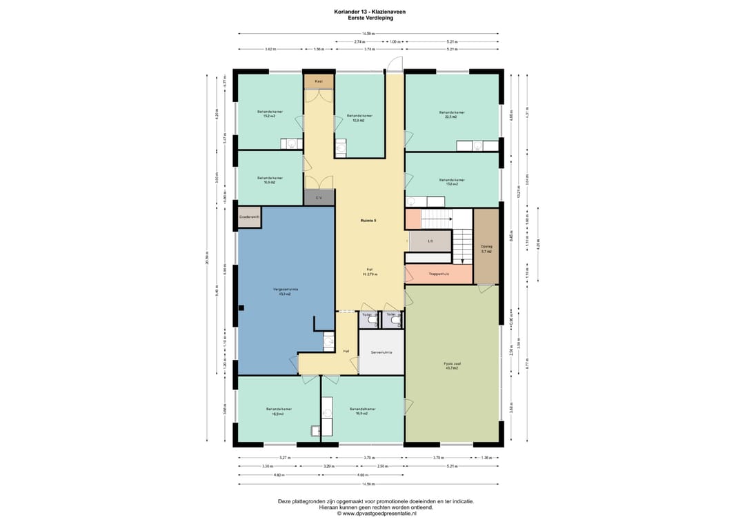 De kantoor- / behandelkamers zijn vrijwel allemaal voorzien van eigen keukenblok geschikt voor een (para)medisch gebruik. Daarnaast is het gebruik ten behoeve van maatschappelijke / zakelijke dienstverlening mogelijk binnen het gebouw.