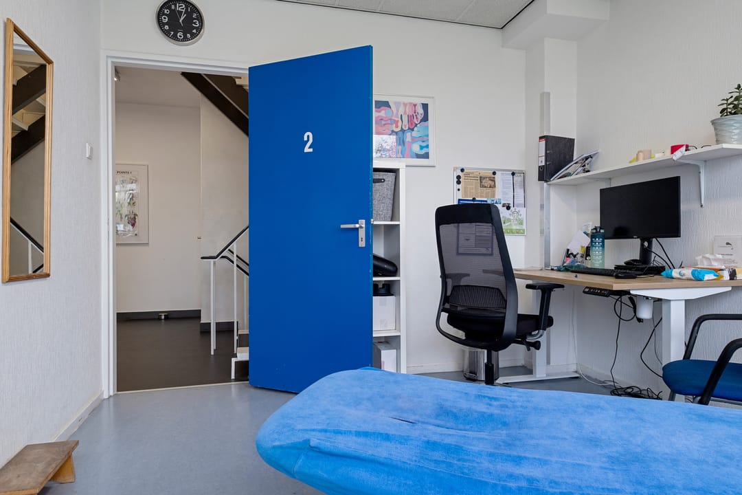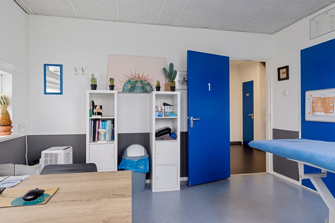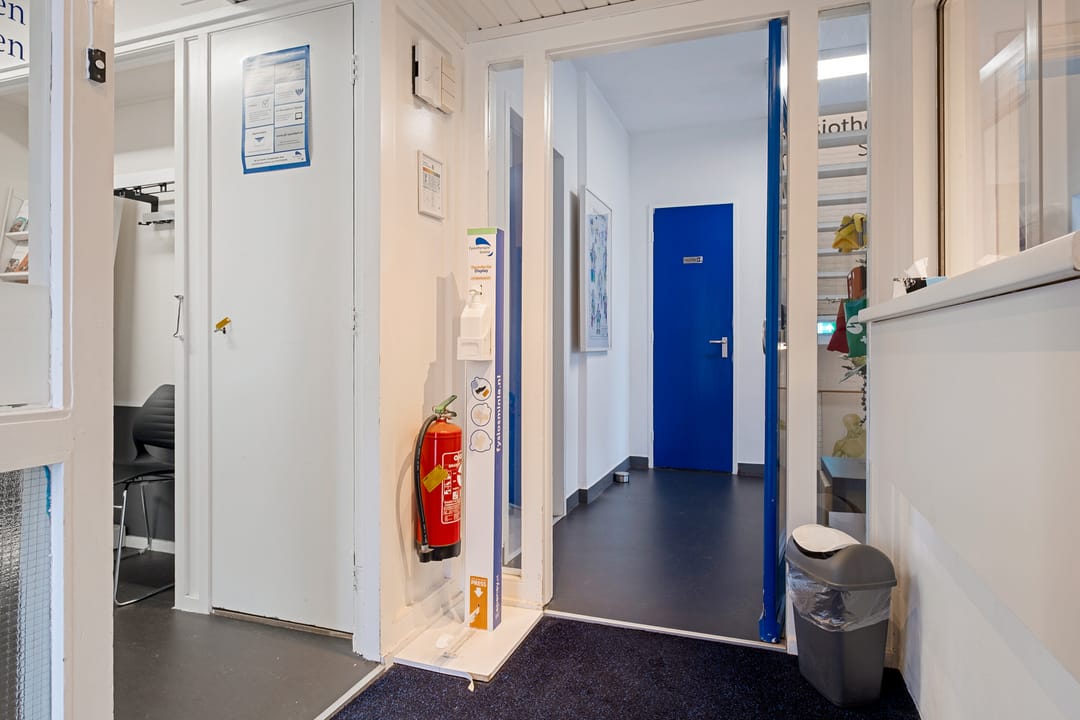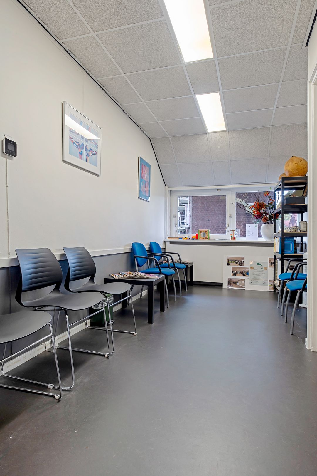 Entree, overloop, hal, toilet, kastruimtes, 4 behandel-/kantoorkamers, receptieruimte (met schuifglas).