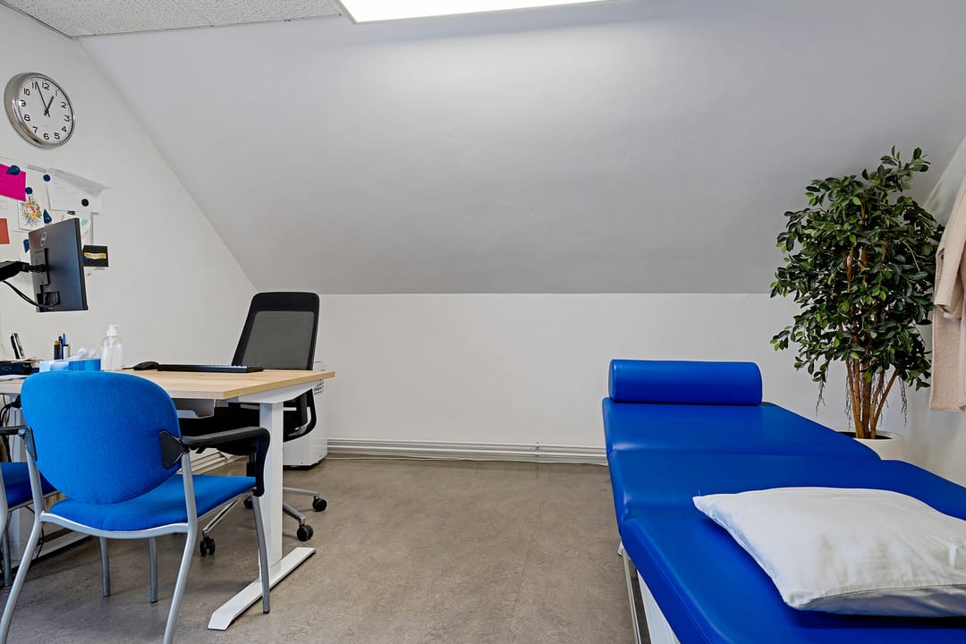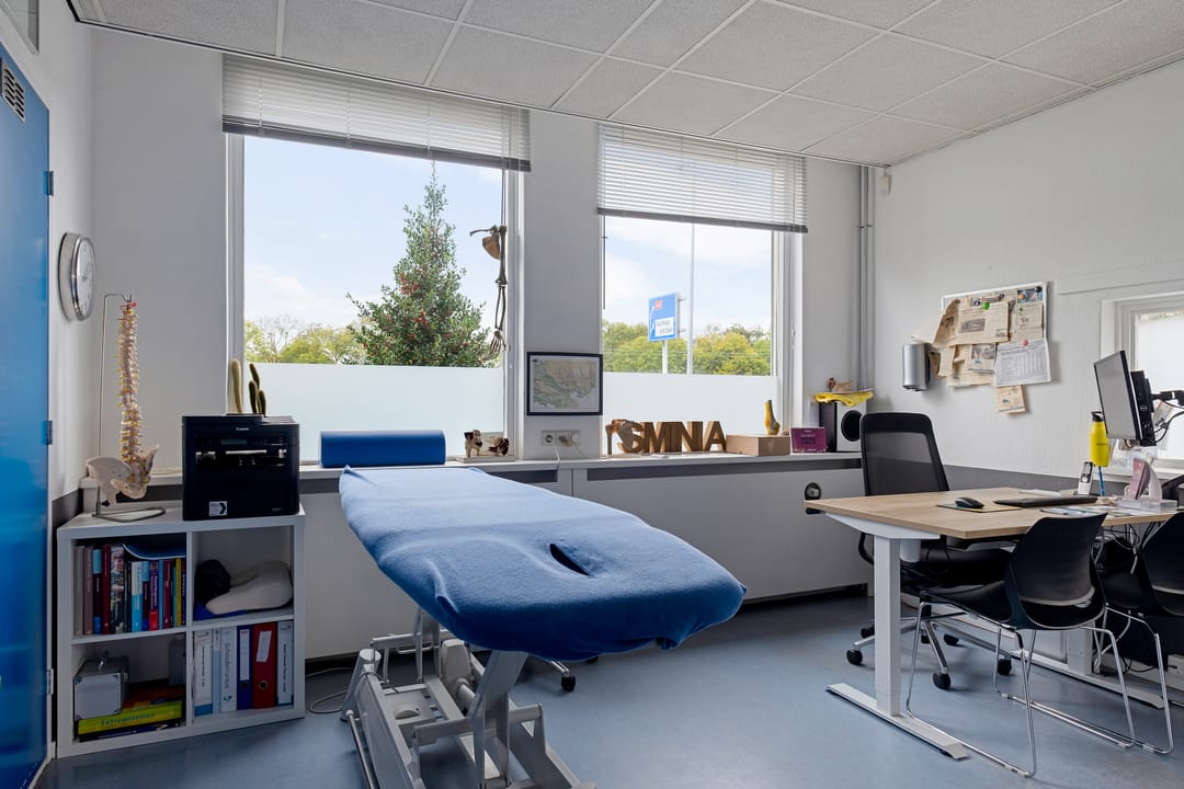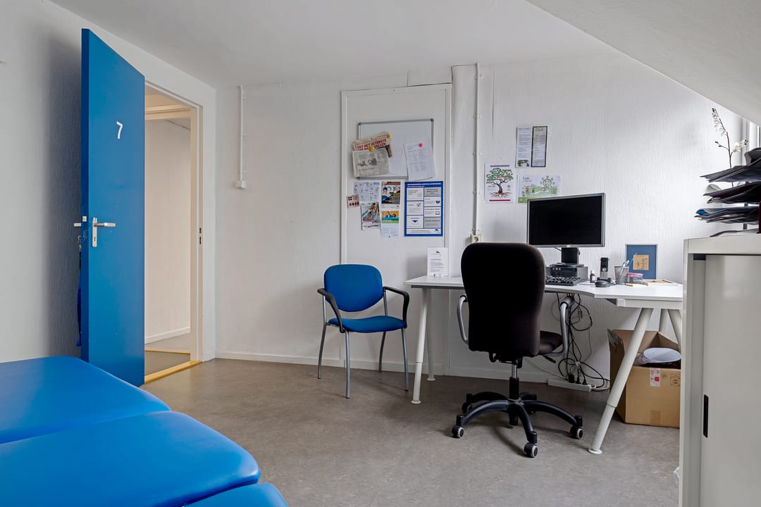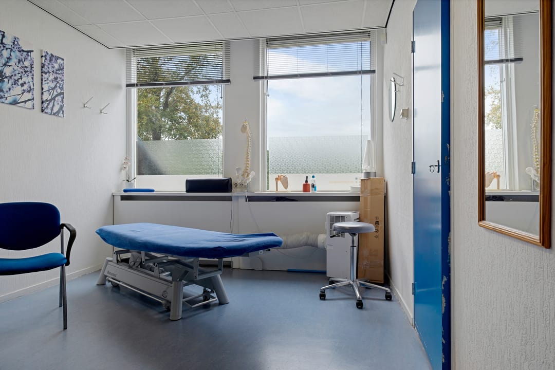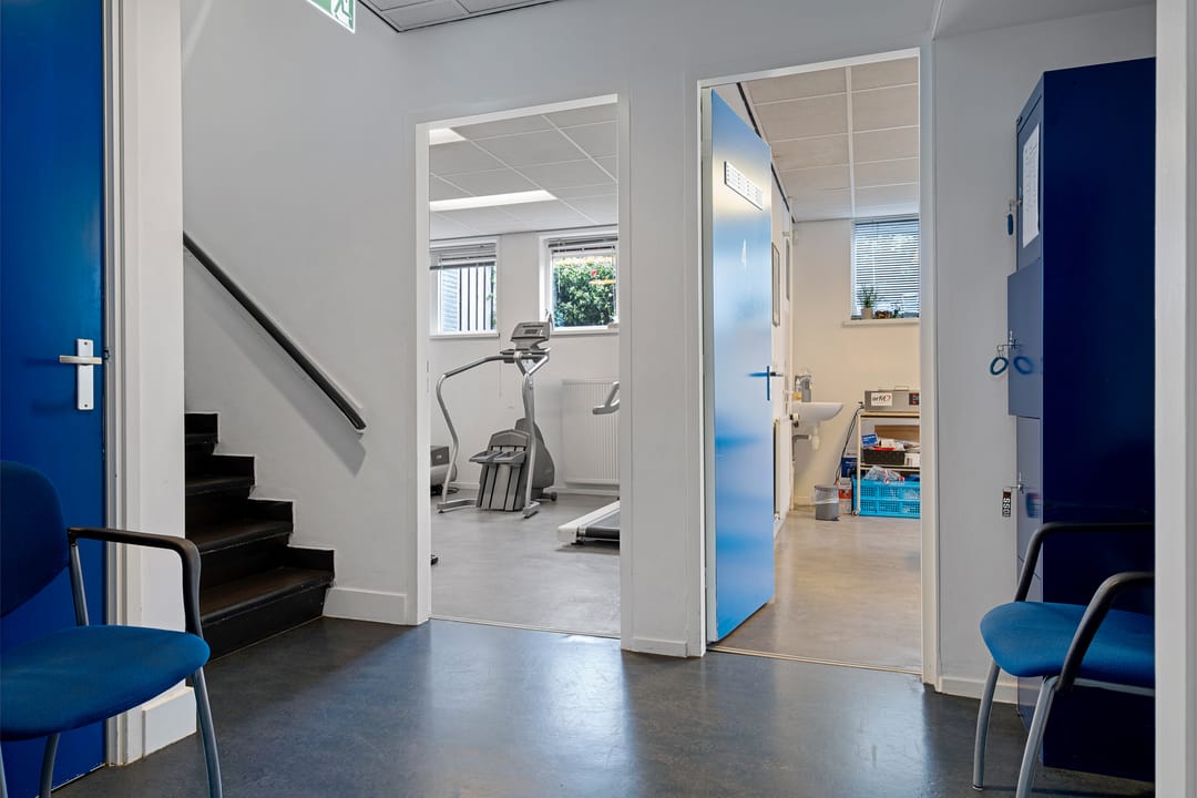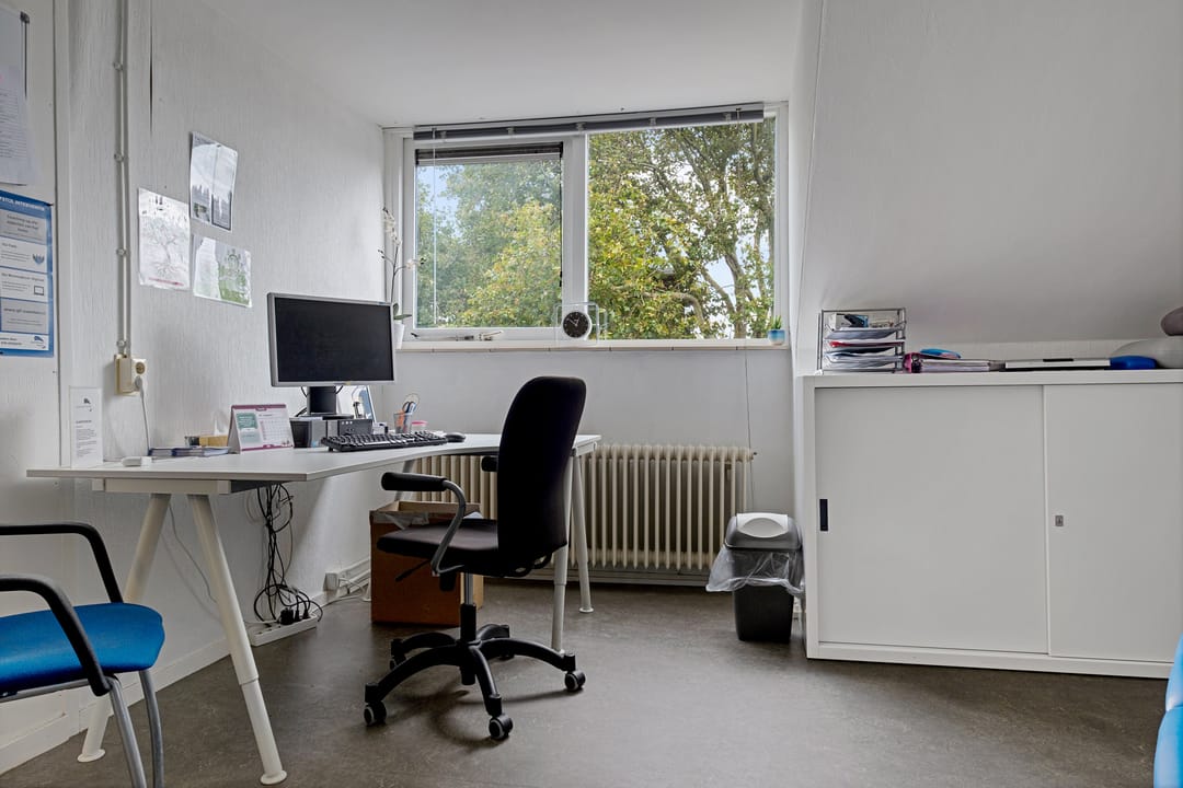 3 behandel-/kantoorkamers, technische ruimte/washok, toilet, hal, trappenkast.