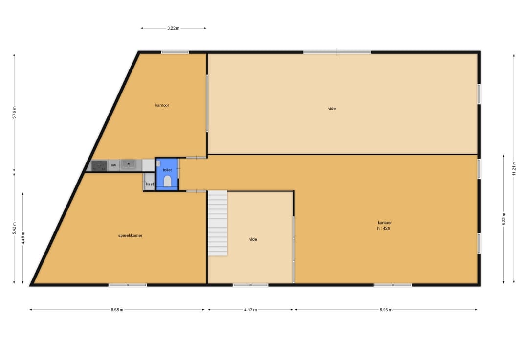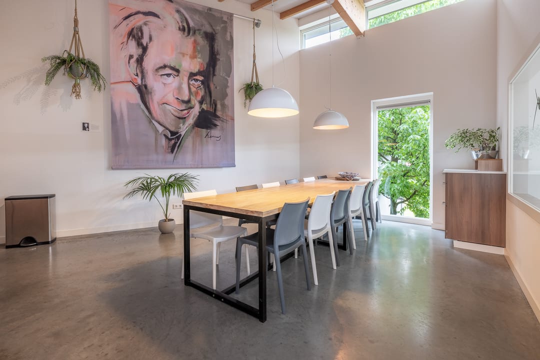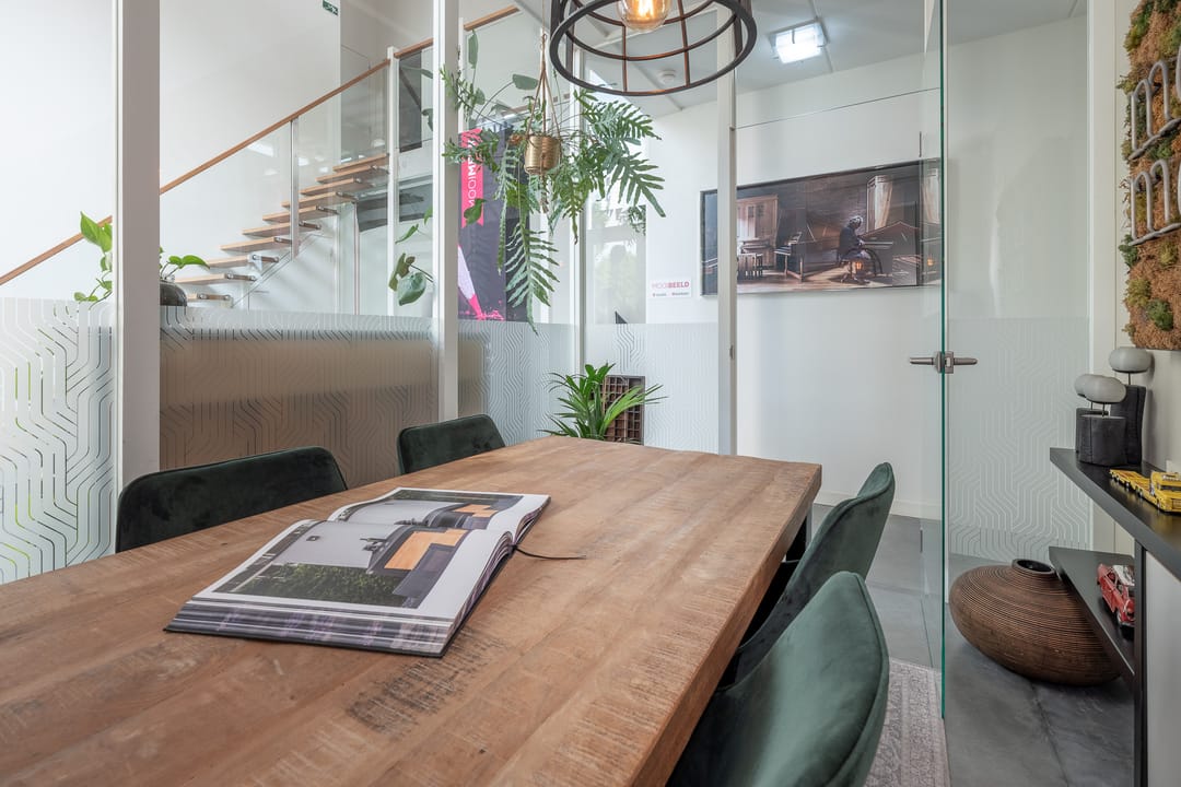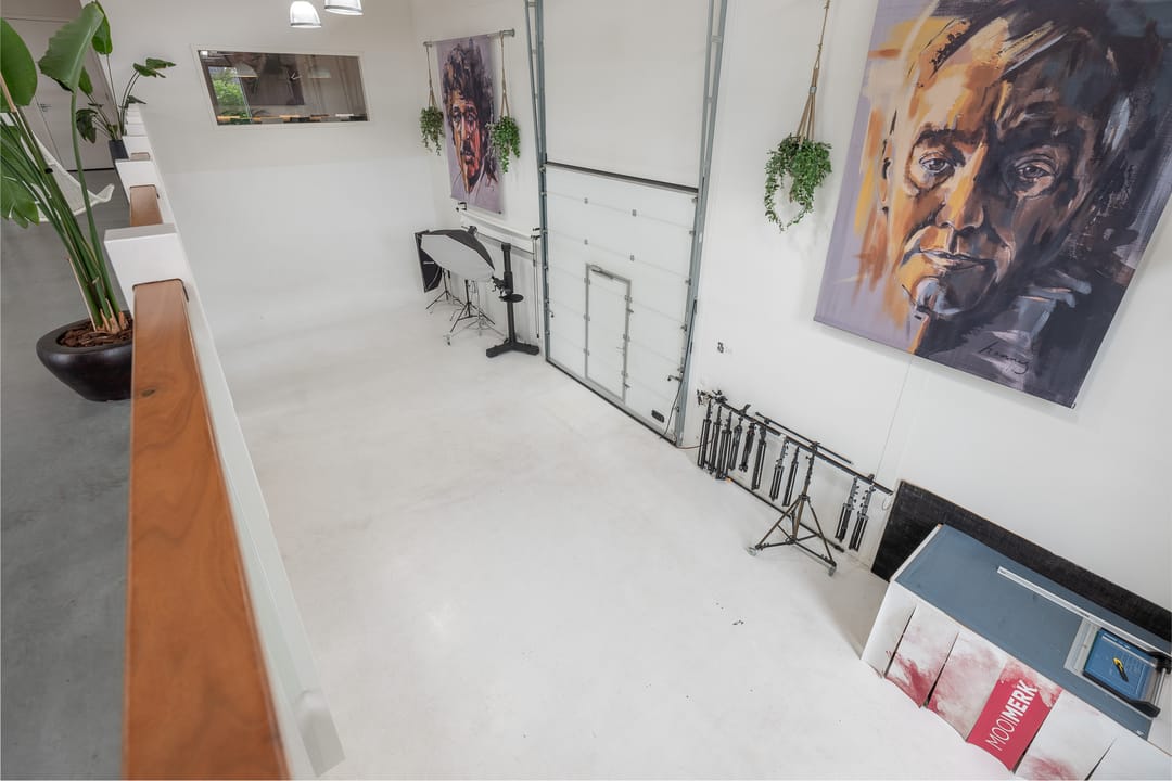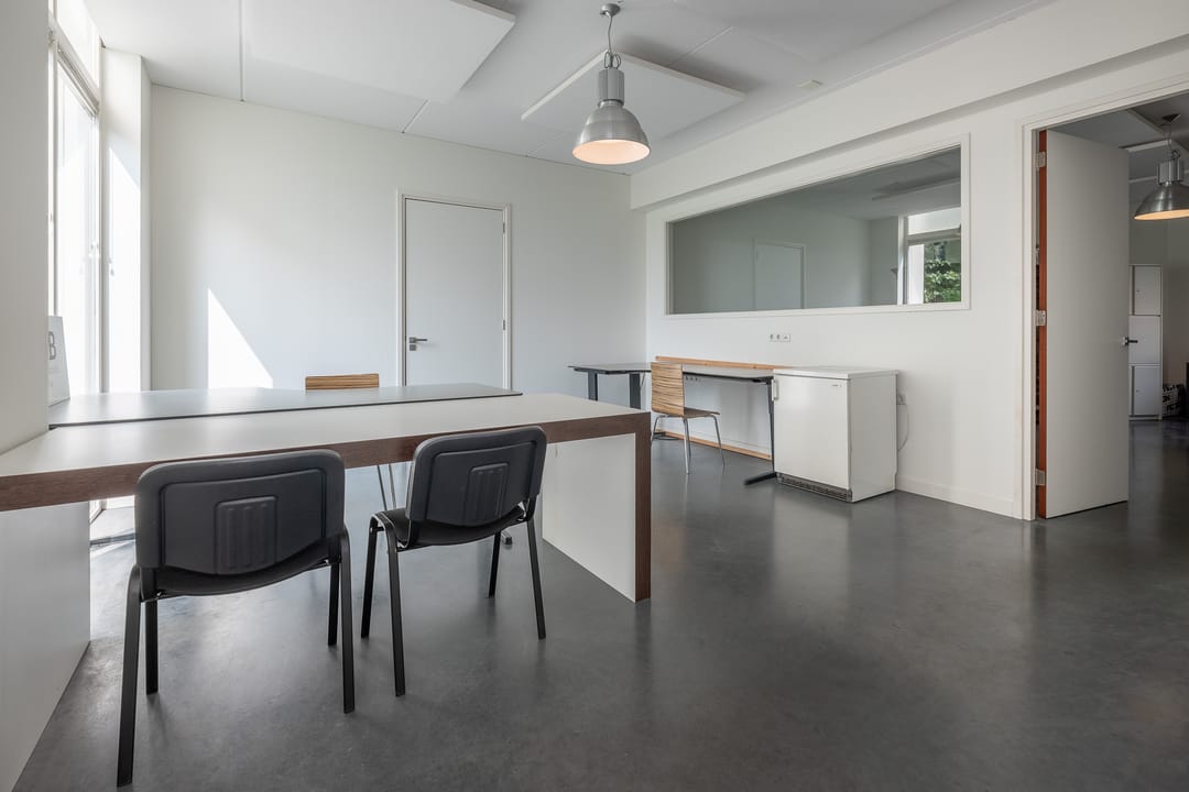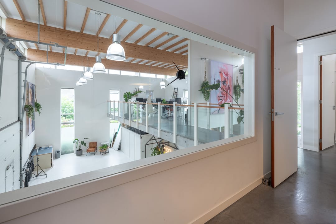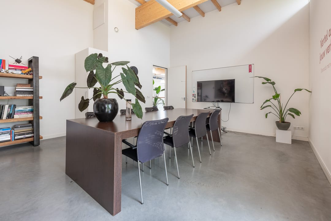Royale hoofdentree met toegang tot een toilet, technische ruimte en een kantoor- en spreekkamer. Via de hoofdentree is er tevens toegang tot de bedrijfsruimte. Middels een fraaie trapopgang bereikt u de 1e verdieping. Deze verdieping beschikt over een zeer ruime kantoor-/studioruimte, een toilet, een spreekkamer en een ruime kantine. Daarnaast is er een fantastische daglichttoetreding door de grote raampartijen.