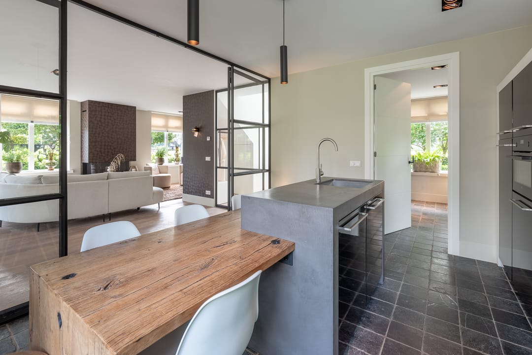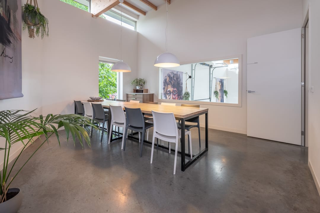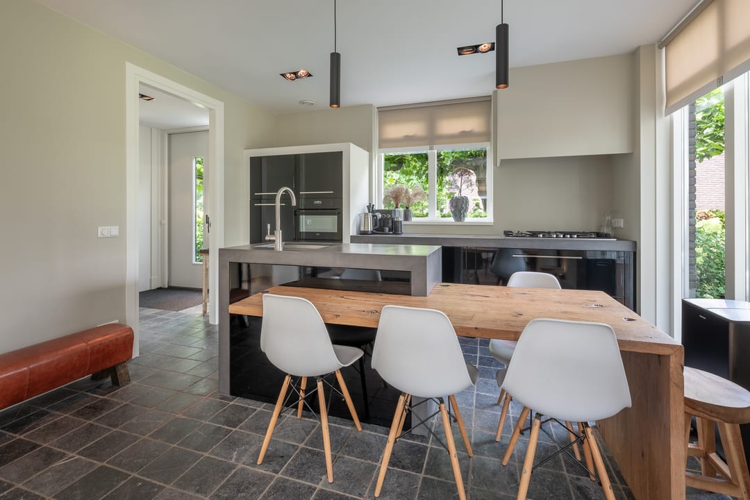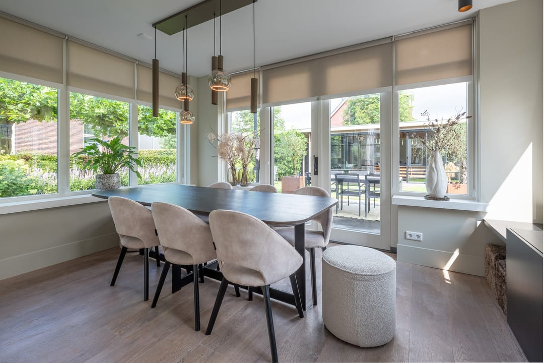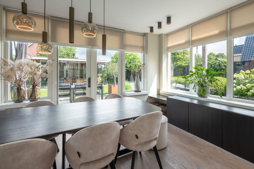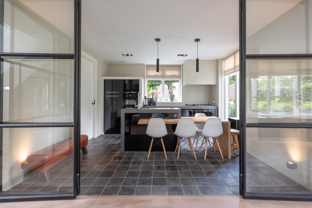 U profiteert binnenshuis van een perfecte afwerking, woonkeuken, vijf slaapkamers, praktische bijkeuken én vloerverwarming-/koeling op de begane grond en de eerste verdieping. Buitenshuis geniet u elke dag opnieuw van de keurig aangelegde achtertuin. Heerlijk op het terras of tot in de late uurtjes in de veranda. Het bedrijfspand en de woning zijn voorzien van een aardwarmtepomp en in totaal 108 zonnepanelen wat resulteert in een uitzonderlijk hoog energielabel. En dus een lage energierekening. Achter in de tuin staat een prachtige veranda/tuinkamer, een echte blikvanger. De veranda is voorzien van softclose, geïsoleerde glazen schuifdeuren, waardoor u hier in alle seizoenen kunt genieten van het buitenleven. In de zomermaanden kunt u de schuifdeuren openen, zodat de veranda en de tuin naadloos in elkaar overlopen.