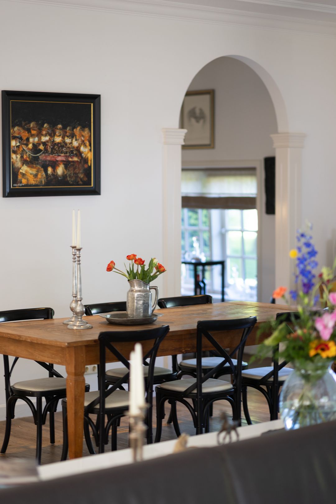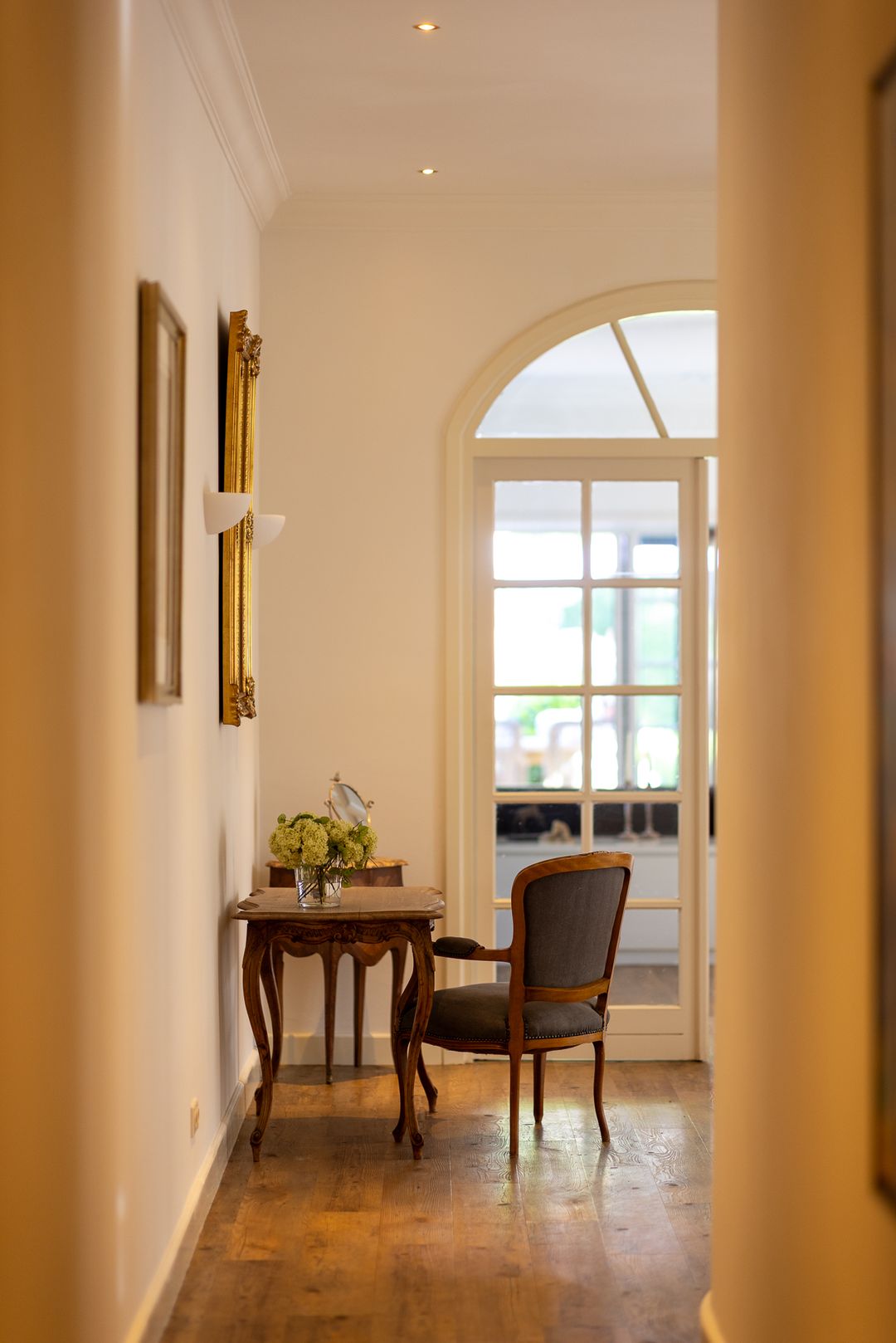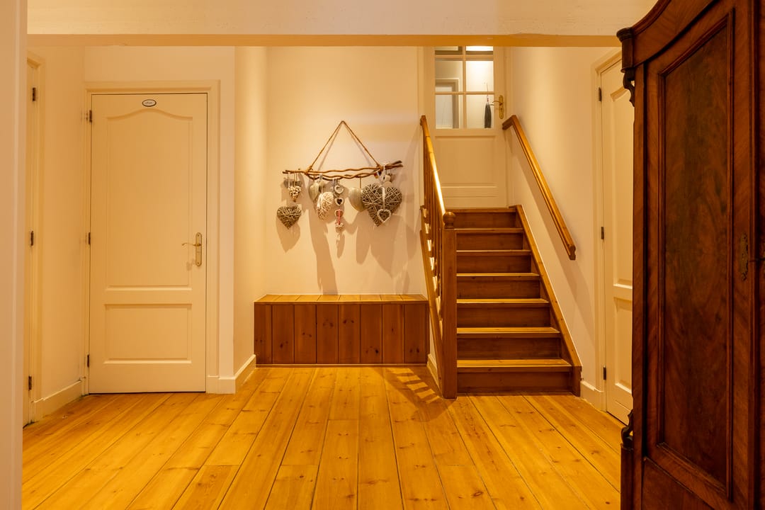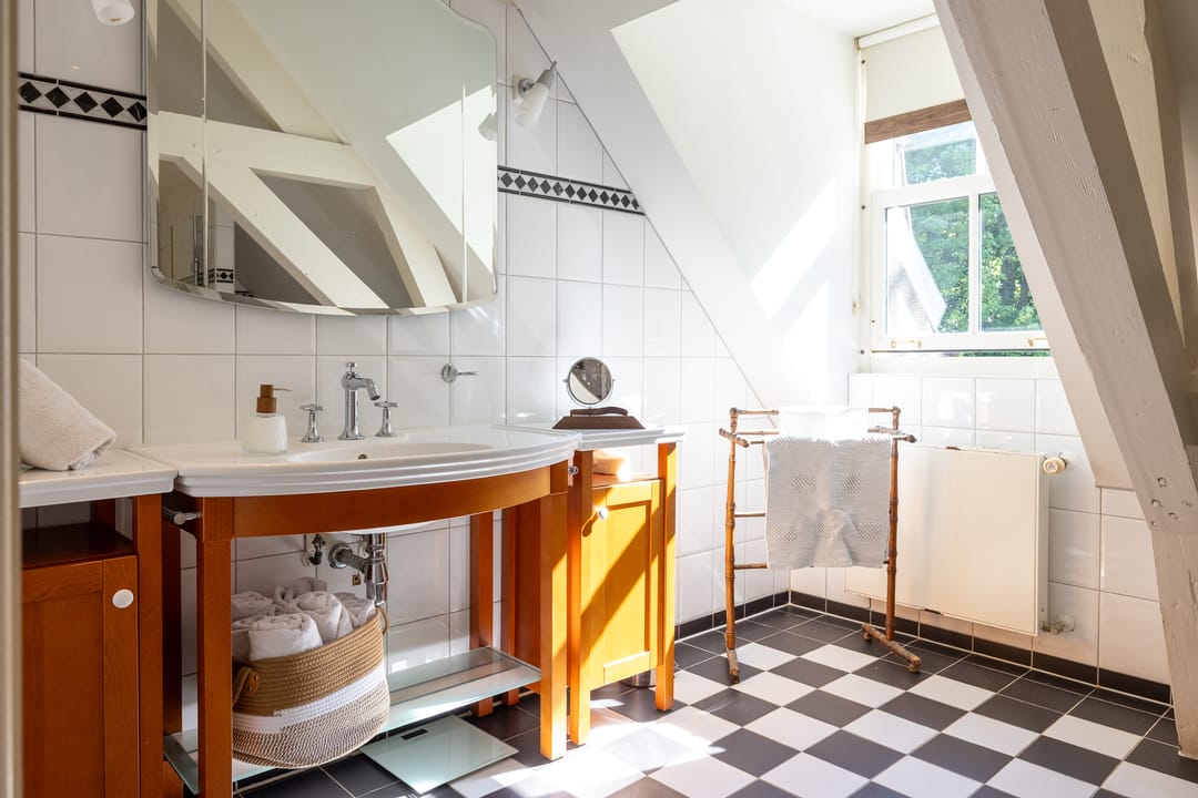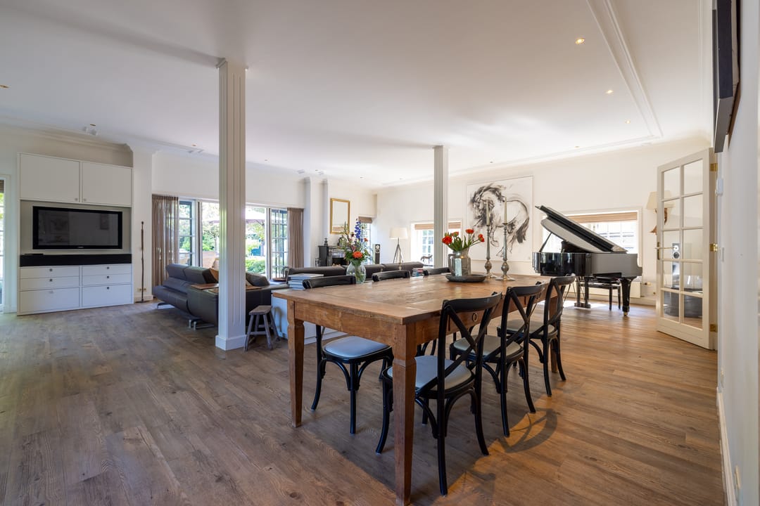 De monumentale opzet, de oude kastanjebomen langs de oprijlaan en de fraaie gevelsteen met jaartal boven de entree zetten direct de toon. Binnen is het oorspronkelijke karakter behouden gebleven, met onder andere estriken vloeren, hoge balkenplafonds, originele paneeldeuren en robuuste gebinten. De voormalige deel (schuur) is smaakvol getransformeerd tot royale living met open haard en stalramen. Aangrenzend ligt de landelijke woonkeuken met kookeiland en uitzicht op de boomgaard. In het voorhuis bevinden zich meerdere sfeervolle vertrekken, waaronder een bibliotheek, een werkkamer en een riante slaapkamer met eigen badkamer en inloopkast.