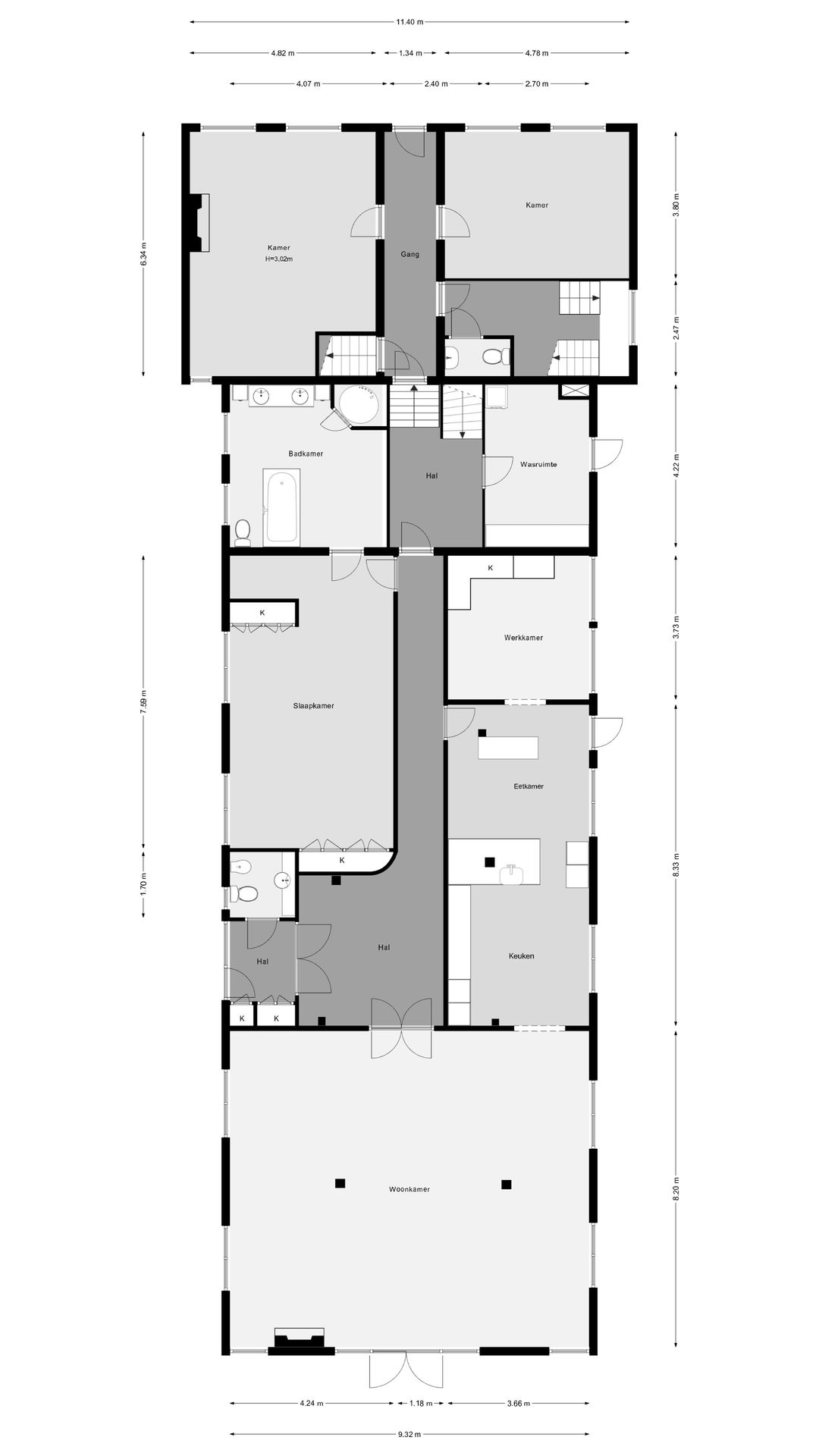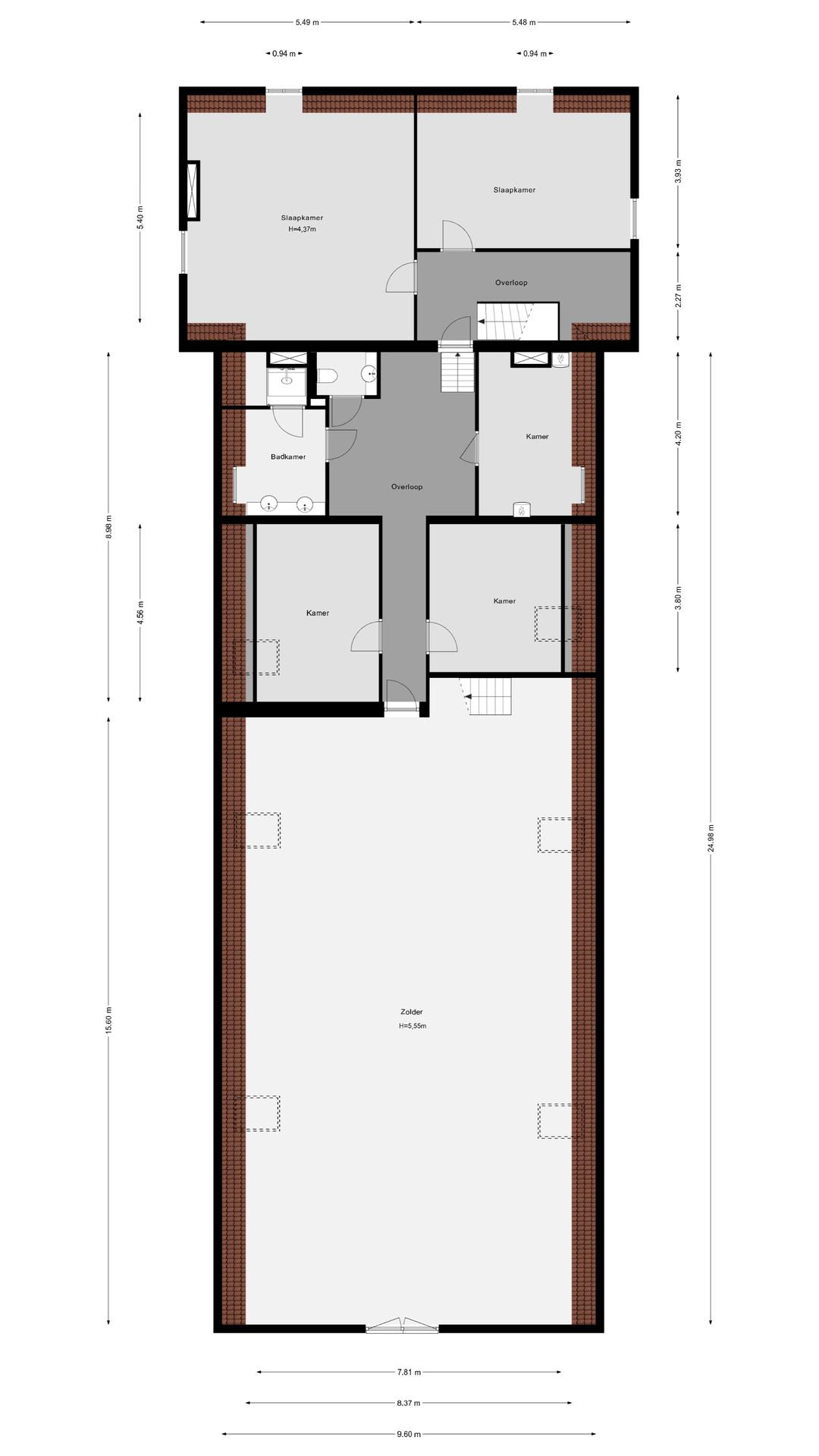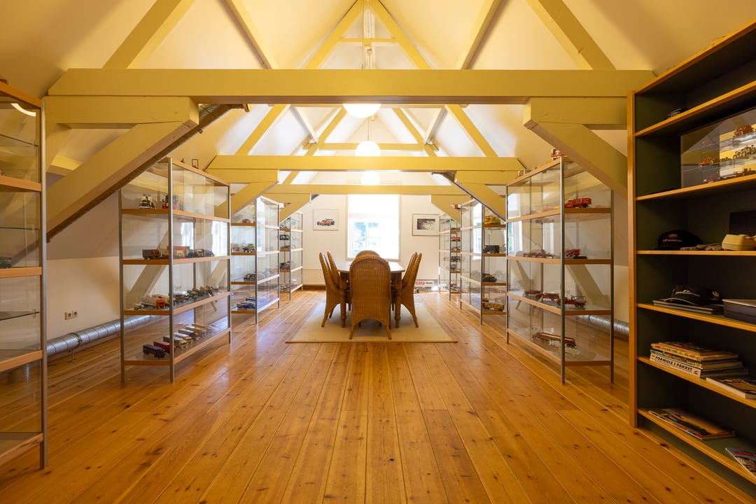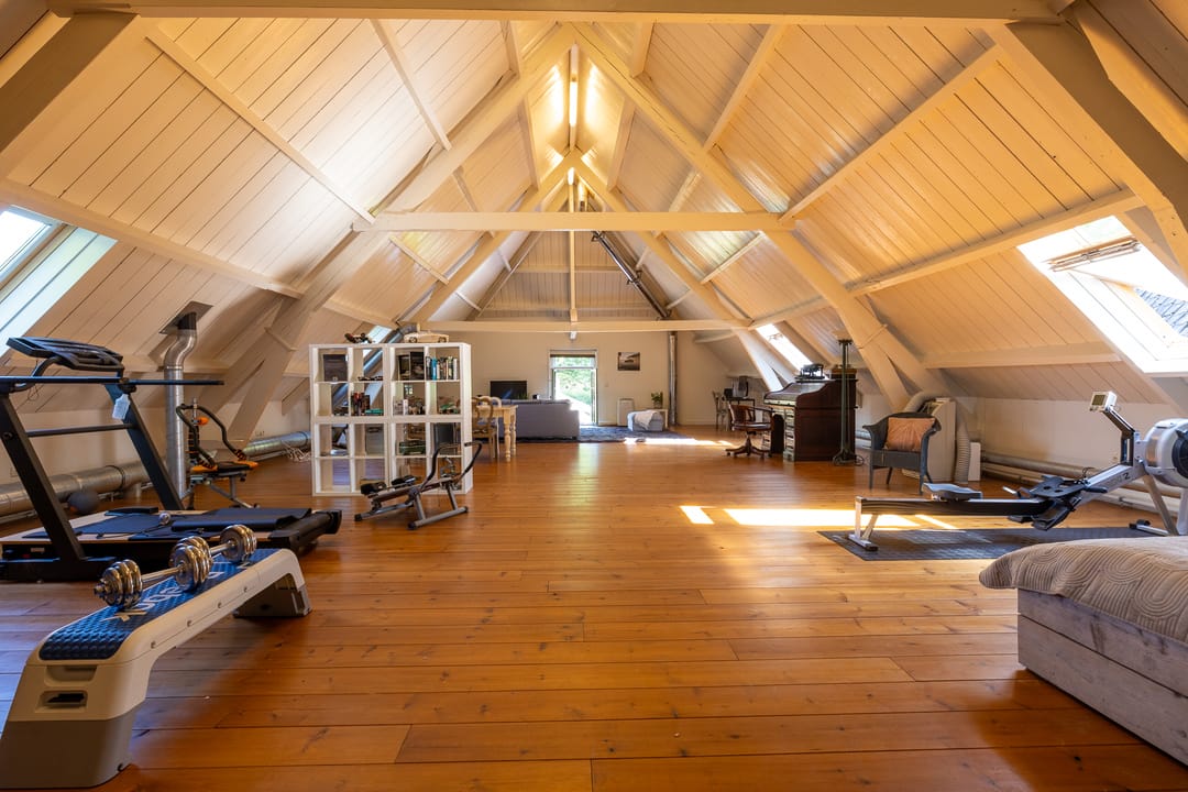 Op de verdieping bevinden zich meerdere slaapkamers, een tweede badkamer en diverse multifunctionele ruimtes, waaronder een zolderverdieping met mogelijkheden voor fitness of hobby. De indeling leent zich uitstekend voor een groot gezin, dubbele bewoning of werken aan huis.