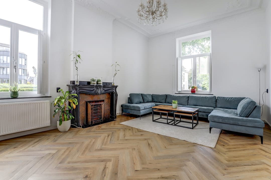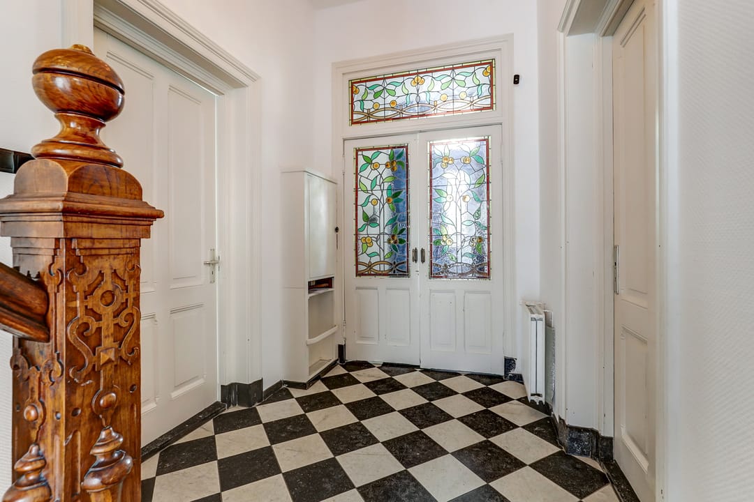 De combinatie van authentieke elementen – waaronder glas-in-loodramen, schouwen en een imposante trappartij – met moderne verduurzaming (30 zonnepanelen en HR++ beglazing) zorgt voor een stijlvolle en toekomstbestendige werkomgeving met een hoogwaardige uitstraling richting cliënten.