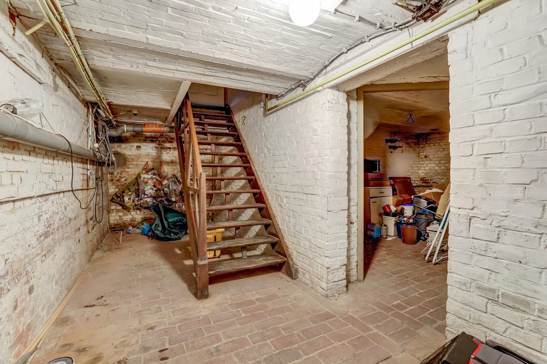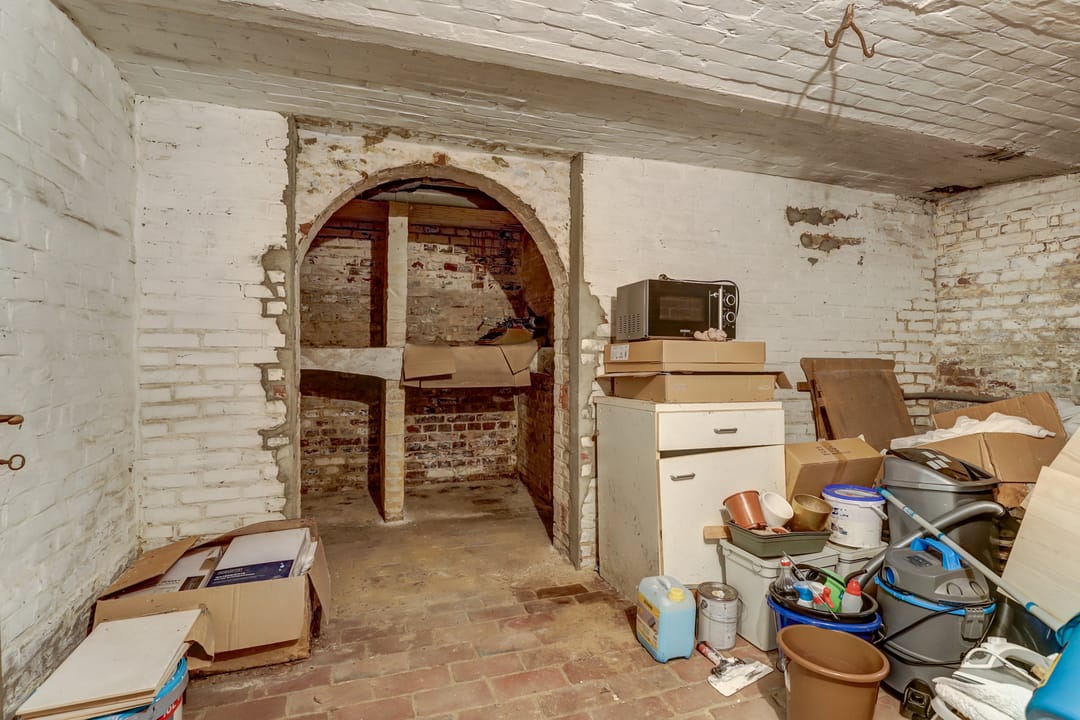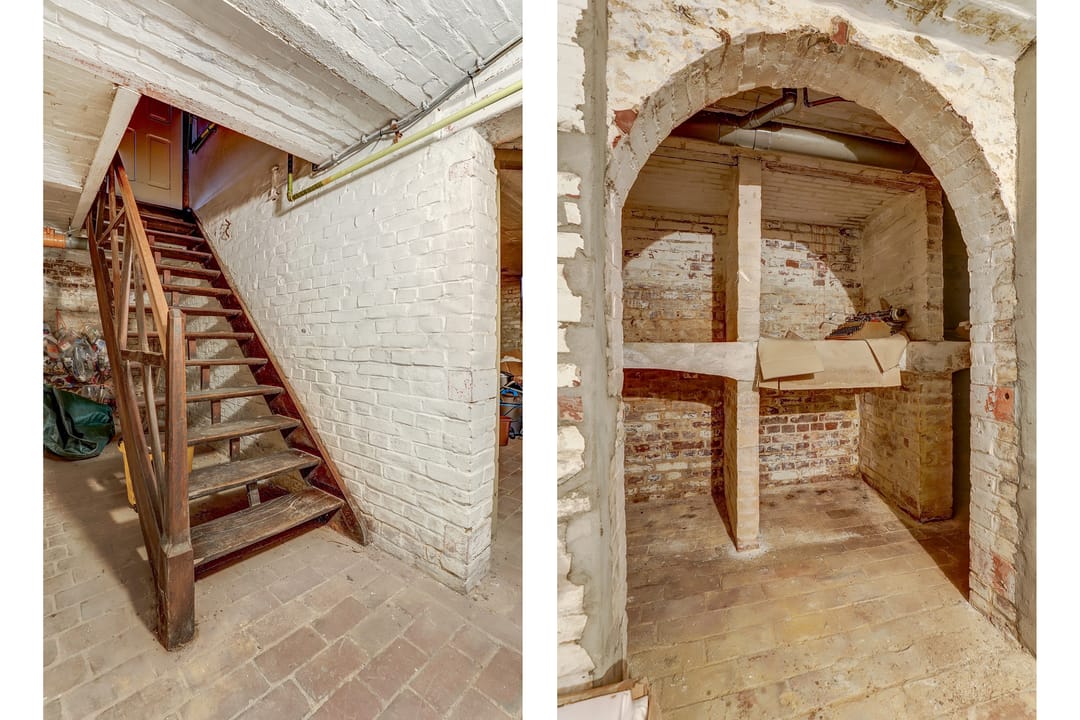 Ruime hal en twee grote bergruimtes/kelders – uitstekend te gebruiken als archief, opslag of ondersteunende ruimte voor een praktijk/kantoor.
