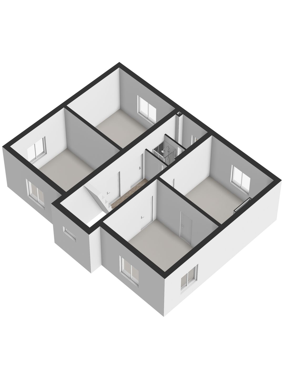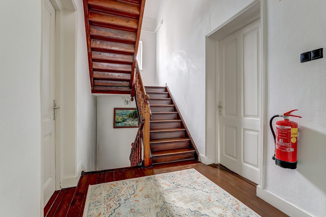Overloop met toegang tot vier ruime kamers, ideaal als kantoorvertrekken, behandelkamers of vergaderruimtes: