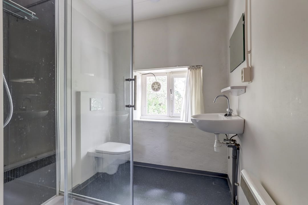 Overloop, tweede badkamer met douche en toilet, cv-ruimte en wasmachineaansluiting, plus: