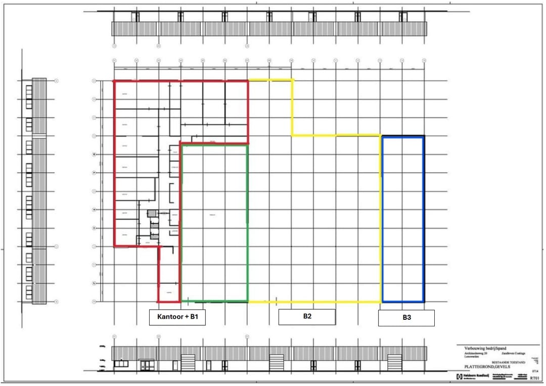 De bedrijfsruimten zijn groot respectievelijk ongeveer 495 m² en 1.152 m², voorzien van een overheaddeur met een breedte van 3 meter en hoogte van 3,5 meter. De kantoorruimte bedraagt circa 776 m² en is ook in delen te huur. De ruimte is verdeeld over diverse kantoorkamers en voorzien van een pantry- / keukenvoorziening, als ook meerdere toiletgroepen. Door de aanwezigheid van een aantal binnendeuren kan de bedrijfsruimte ook vanuit het kantoor worden betreden. Dit geeft tevens de mogelijkheid om de bedrijfsruimte met een voor u passend aantal kantoorkamers te verhuren.