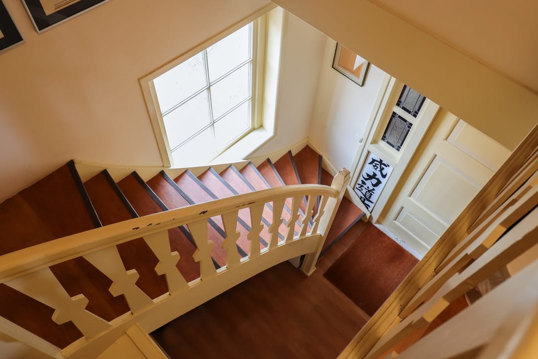 Achter in de hal bevinden zich het toilet en de toegang tot het bovengelegen woondeel (Bonifatiusplein 2), dat tevens beschikt over een eigen ingang aan de noordzijde, via de toegangsstraat naar de kerk.